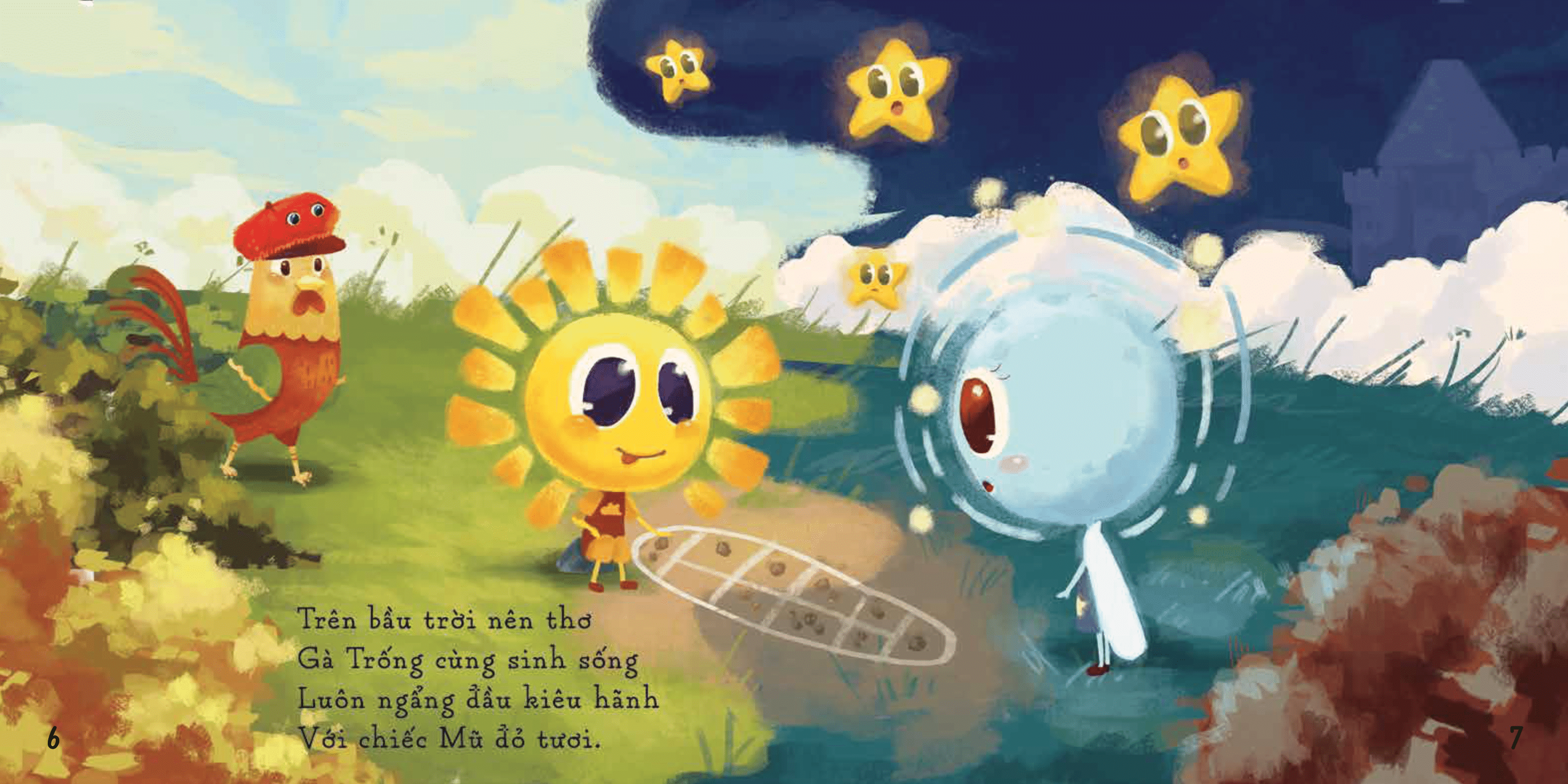 Đồng Dao Cổ Tích - Sách Song Ngữ Việt-Anh Cuốn sách kể về hành trình đi lạc vào thế giới siêu thực của hai chị em Thi Ca và Thi Họa. Đó là nơi của