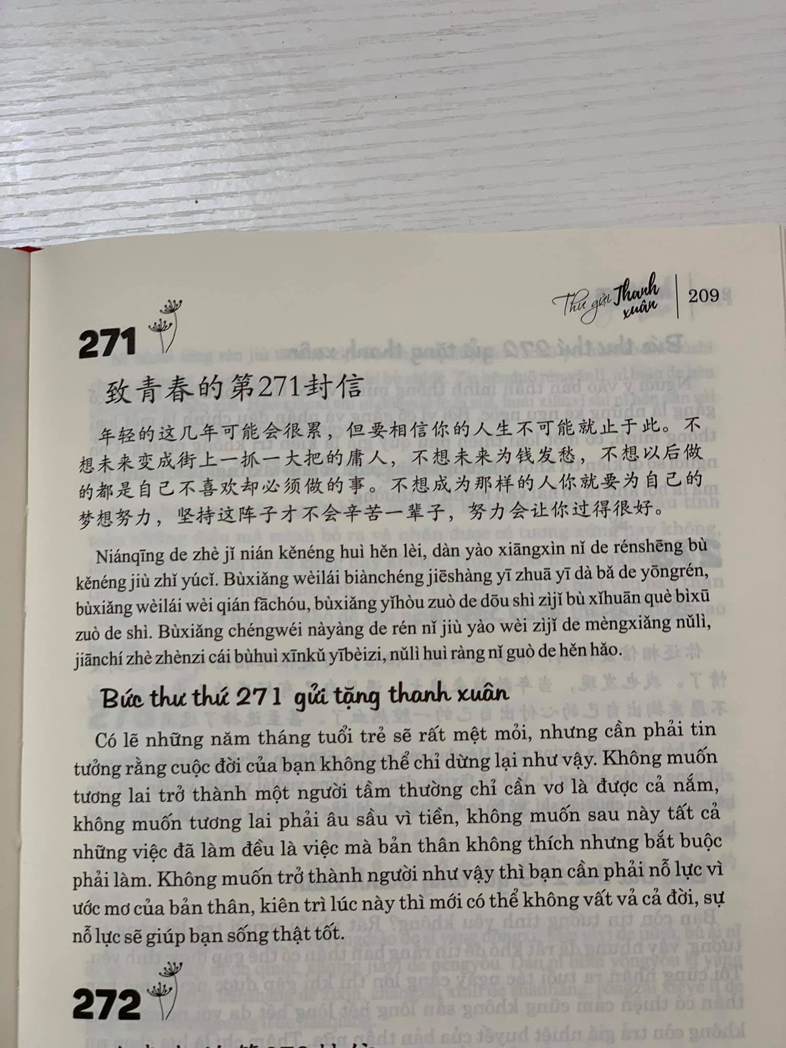 Nội dung sách:Gồm những bức thư song ngữ (Trung – Việt – Pinyin) gửi tặng thanh xuân tươi đẹp