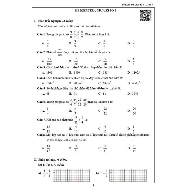 Toán 4 | Đề kiểm tra giữa kì 2 | Đề số 2 | Ôn thi học kì 2 | Thầy Nguyễn Văn Quyền