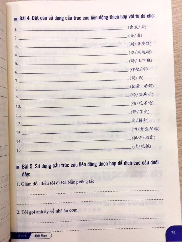 1.BÀI TẬP DỊCH TRUNG VIỆT-VIỆT TRUNG CỦNG CỐ CẤU TRÚC CỐ ĐỊNH & NGỮ PHÁP (Dựa theo ngữ pháp tiếng Hán Sơ trung cấp hiện đại"  Loại bìa Bìa mềm Số trang 340 SKU