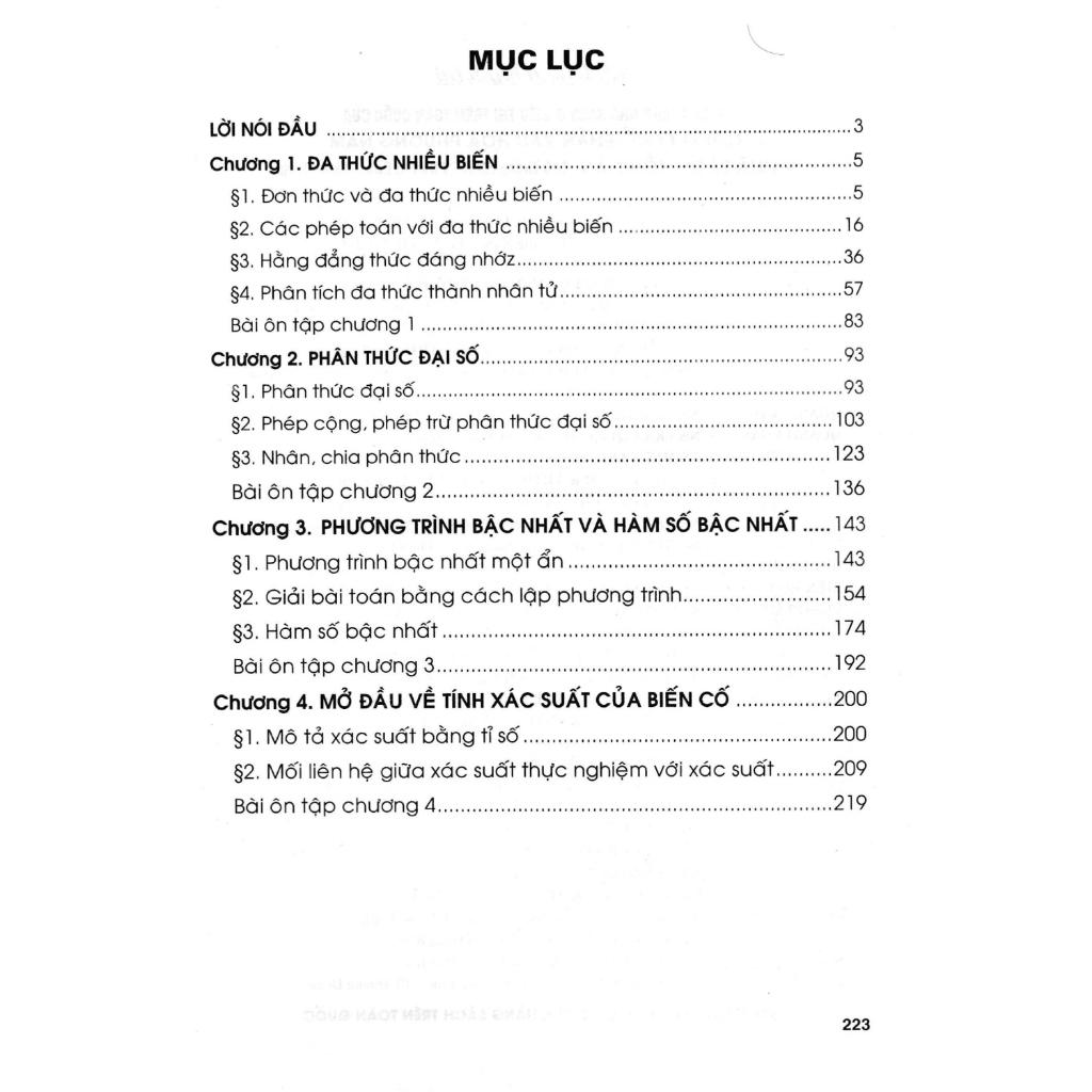 - Toán Nâng Cao Đại Số 8 (Dùng Chung Cho Các Bộ SGK Hiện Hành) Để giúp các em học sinh lớp 8 có tài liệu tham khảo, học tập, bồi dưỡng và nâng cao kiến thức môn Toán lớp 8 theo Chương trình giáo dục phổ thông năm 2018 của Bộ Giáo dục và Đào tạo, chúng tôi biên soạn cuốn sách “Toán nâng cao Đại số 8". Nội dung sách vẫn bám sát các yêu cầu của chương trình, đồng thời làm đa dạng thêm các loại bài tập thích hợp với mỗi nội dung trong sách giáo khoa. Sách trình bày một hệ thống các dạng bài tập phong phú, giúp các em củng cố, phát triển và nâng cao kiến thức đã học. Mỗi bài học gồm bốn phần như sau: A. KIẾN THỨC CẦN NHỚ: Phần này đề cập đến những kiến thức cơ bản, những kiến thức bổ sung cần thiết để có thể giải được các dạng toán. B. CÁC DẠNG TOÁN: Phần này trình bày một số dạng toán nâng cao thường gặp và phương pháp giải, cùng với những ví dụ chọn lọc minh hoạ cho mỗi dạng toán. C. LUYỆN TẬP: Phần này đưa ra hệ thống các bài tập đa dạng được phân loại theo các dạng toán, giúp học sinh tự rèn luyện các kĩ năng giải toán. D. HƯỚNG DẪN GIẢI VÀ ĐÁP SỐ: Qua những hướng dẫn giải cụ thể để học sinh có thể tự đánh giá và hiểu rõ hơn cách giải cho mỗi dạng toán, từ đó giúp các em hứng thú hơn khi học tập. Chúng tôi hi vọng cuốn sách này sẽ là tài liệu tham khảo thiết thực, hữu ích cho mọi học sinh lớp 8, dù học theo bất cứ sách giáo khoa nào.