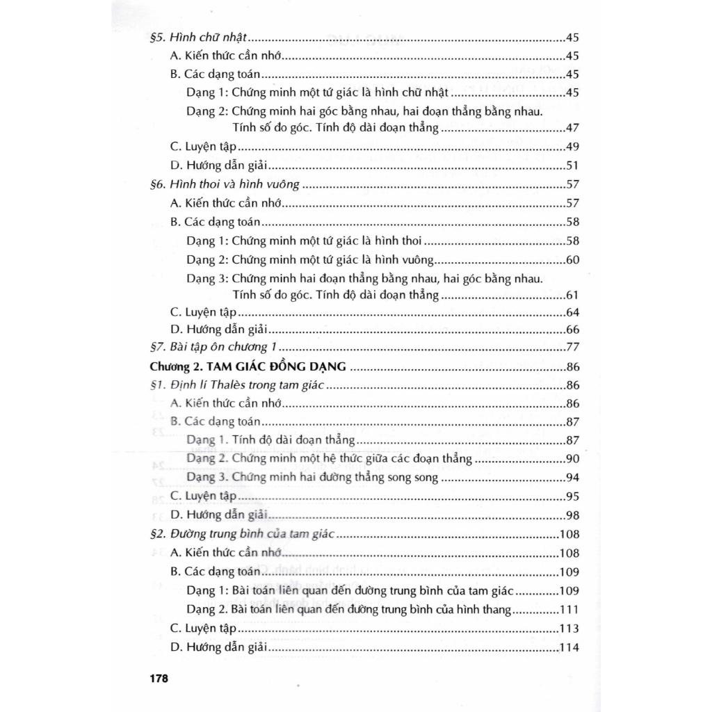 - Toán Nâng Cao Hình Học 8 (Dùng Chung Cho Các Bộ SGK Hiện Hành) Để giúp các em học sinh lớp 8 có tài liệu tham khảo, học tập bồi dưỡng và nâng cao kiến thức môn Toán lớp 8 theo Chương trình giáo dục phổ thông năm 2018 của Bộ Giáo dục và Đào tạo, chúng tôi biên soạn cuốn sách “Toán nâng cao Hình học 8”. Nội dung cuốn sách bám sát các yêu cầu của chương trình, đồng thời làm đa dạng thêm các loại bài tập thích hợp với mỗi nội dung trong sách giáo khoa. Sách trình bày một hệ thống các dạng bài tập phong phú, giúp các em củng cố, phát triển và nâng cao kiến thức đã học. Mỗi bài học gồm bốn phần như sau: A. KIẾN THỨC CẦN NHỚ: Phần này đề cập đến những kiến thức cơ bản, những kiến thức bổ sung cần thiết để có thể giải được các dạng toán. B. CÁC DẠNG TOÁN: Phần này trình bày một số dạng toán nâng cao thường gặp và phương pháp giải, cùng với những ví dụ chọn lọc minh hoạ cho mỗi dạng toán. C. LUYỆN TẬP: Phần này đưa ra hệ thống các bài tập đa dạng được phân loại theo các dạng toán, giúp học sinh tự rèn luyện các kĩ năng giải toán. D. HƯỚNG DẪN GIẢI: Qua những hướng dẫn giải cụ thể, học sinh có thể tự đánh giá và hiểu rõ hơn cách giải cho mỗi dạng toán, từ đó giúp các em hứng thú hơn khi học tập. Chúng tôi hi vọng cuốn sách này sẽ là tài liệu tham khảo thiết thực, hữu ích cho mọi học sinh lớp 8, dù học theo bất cứ sách giáo khoa nào. Rất mong nhận được ý kiến đóng góp của bạn đọc để sách ngày càng hoàn thiện hơn. Công ty phát hành: Nhà Sách Hồng Ân 3 Năm Xuất Bản: 2024 Tác Giả: Nguyễn Thiện Chí Kích Thước: 17 x 24 cm Nhà Xuất bản: Đại Học Sư Phạm Số Trang: 180 Bìa: Mềm Barcode8935092836966