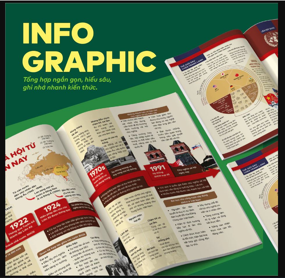 Toàn bộ lí thuyết trong sách được tổng hợp ngắn gọn lại bằng Infographic giúp bạn nâng cao cảm hứng học, dễ hiểu, kết nối kiến thức và ghi nhớ nhanh hơn.