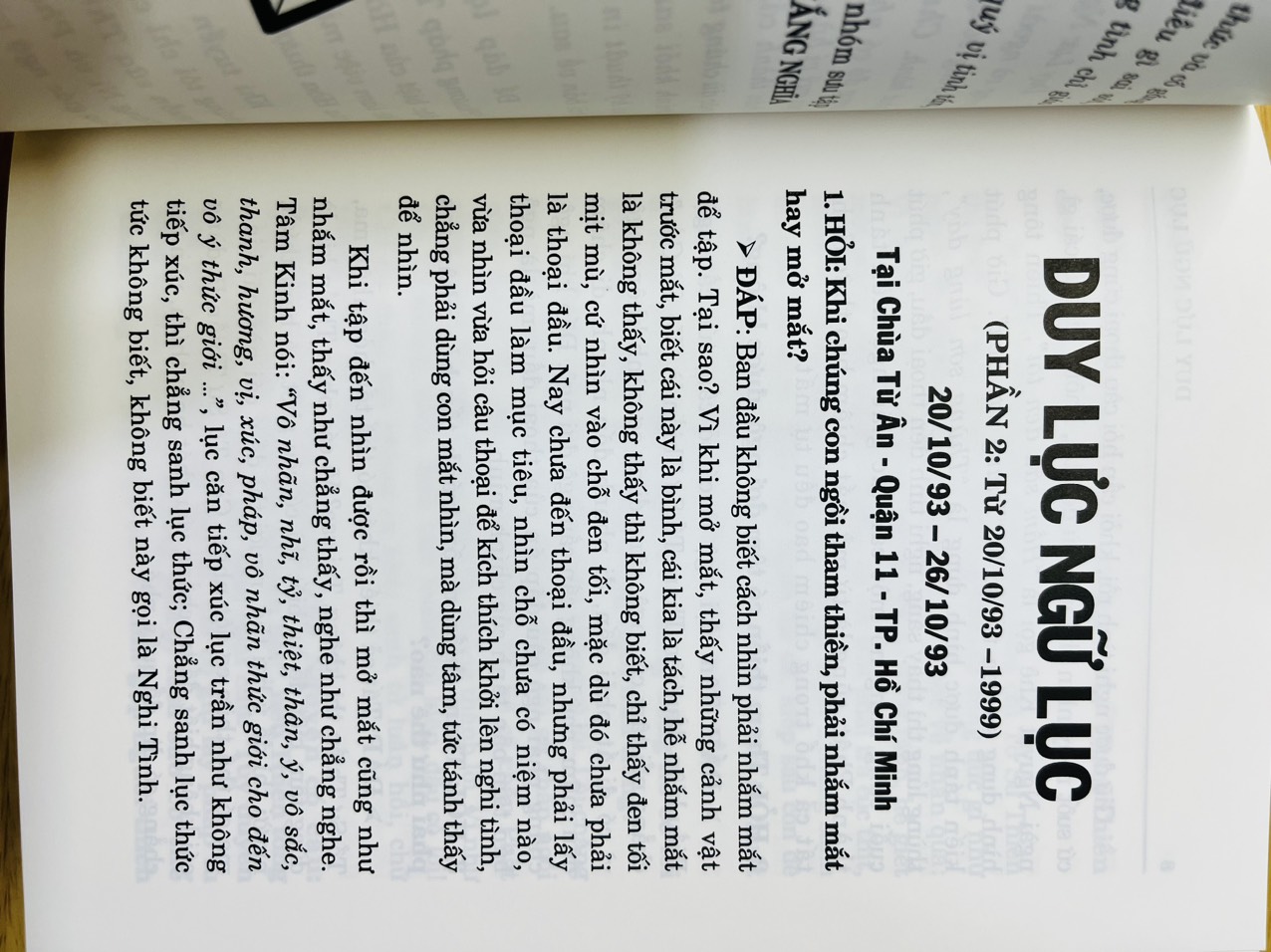 quyển NGỮ LỤC này là tập hợp từ những lời thị chúng của Thiền Sư DUY LỰC trong những kỳ thiền thất tại Việt Nam kể từ năm 1983 cho đến những năm tháng cuối đời. Cứ hằng tháng Ngài cho mở một khóa tu bảy ngày ở mỗi Thiền Đường cho các hành giả tu Thiền, gọi là "đả Thiền Thất" để hướng dẫn đại chúng chuyên sâu trong sự nghiệp tu hành. Những lời dạy trước sau đều được đồ đệ ghi âm lại để làm tài liệu tham khảo.