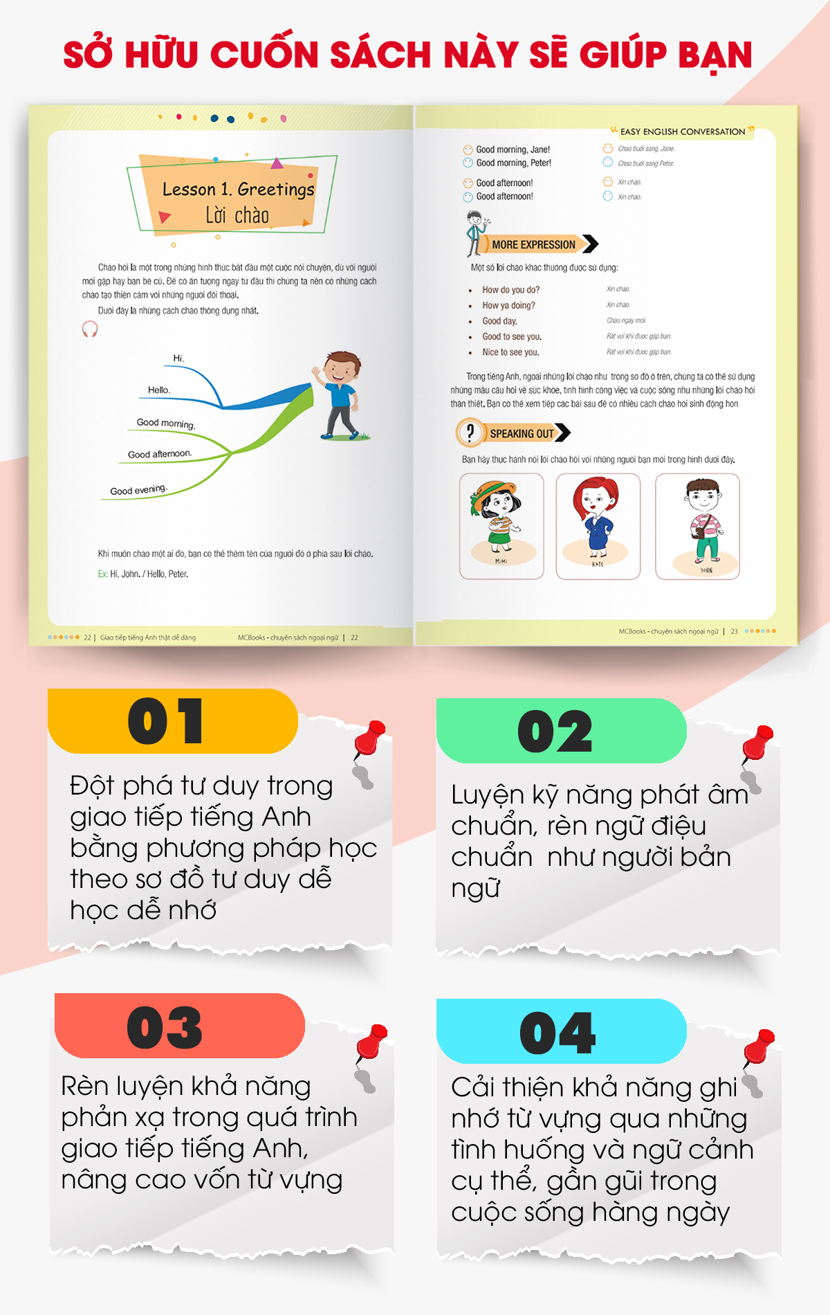 Sách - Easy English Conversation – Giao tiếp tiếng Anh thật dễ dàng là cuốn sách học tiếng Anh giao tiếp bằng sơ đồ tư duy giúp bạn đọc Giao tiếp tiếng Anh thật dễ dàng, cải thiện khả năng giao tiếp tiếng Anh từ mới bắt đầu đến nâng cao.