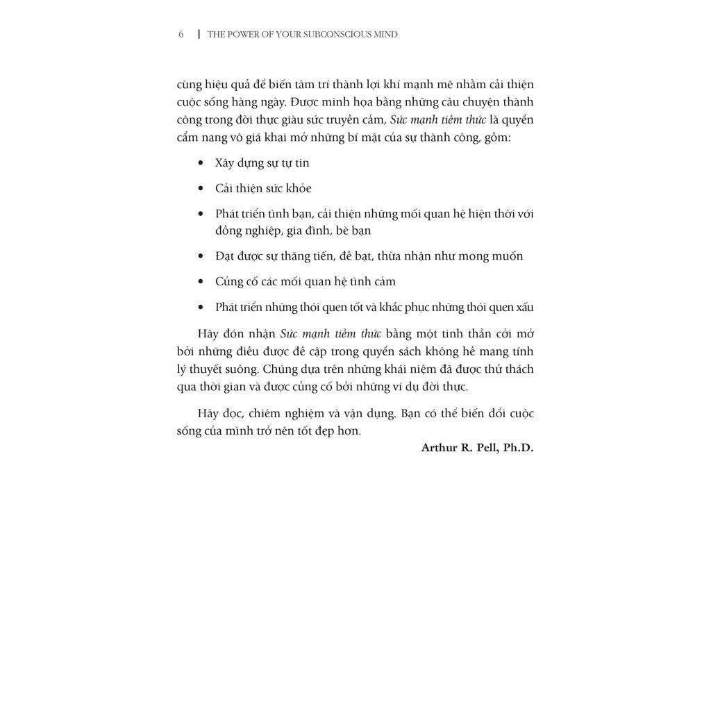 Là một trong những quyển sách về nghệ thuật sống nhận được nhiều lời ngợi khen và bán chạy nhất mọi thời đại, Sức Mạnh Tiềm Thức đã giúp hàng triệu độc giả trên thế giới đạt được những mục tiêu quan trọng trong đời chỉ bằng một cách đơn giản là thay đổi tư duy.