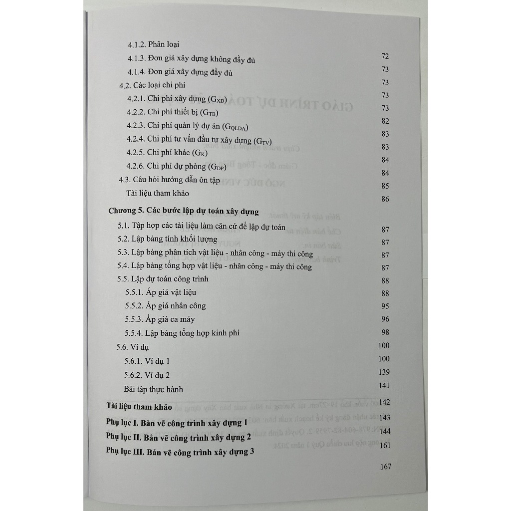 Giáo trình này cập nhật những quy định và hướng dẫn mới nhất của Chính phủ về quản lý chi phí đầu tư xây dựng của Bộ xây dựng về xác định và quản lý chi phí đầu tư xây dựng, định mức xây dựng, phương pháp xã định các chỉ tiru kinh tế kỹ thuật và đo bóc khối công trình. Nhiều ví dụ và bài tập được đưa vào giáo trình nhằm giúp người đọc nắm bắt và có thể thực hành ngay các bước lập dự toán từ các công trình xây dựng thực tế.