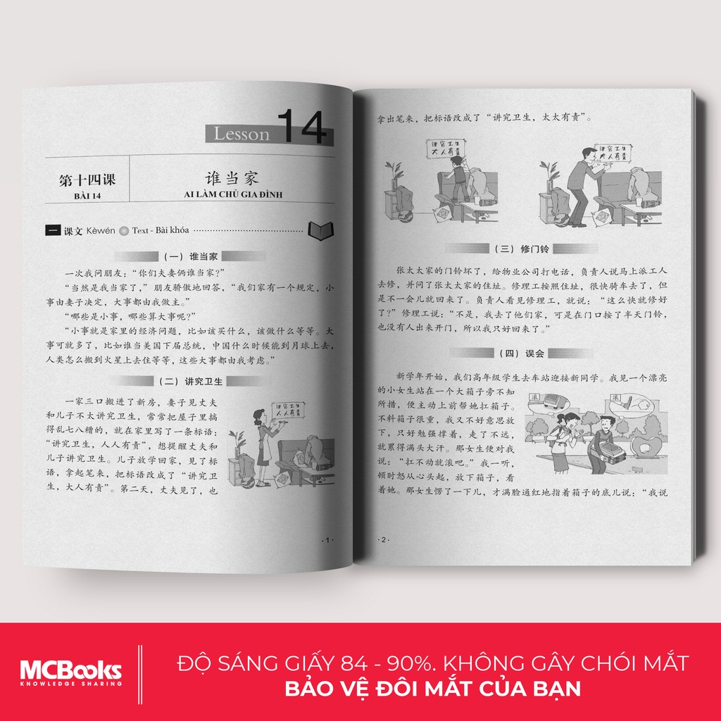 Các bài học trong “Giáo trình Hán ngữ 2 Tập 1 Quyển hạ phiên bản 3″ được Mcbooks thiết kế như sau: 1. Bài đọc, 2. Từ mới, 3. Chú thích, 4. Ngữ âm, Ngữ