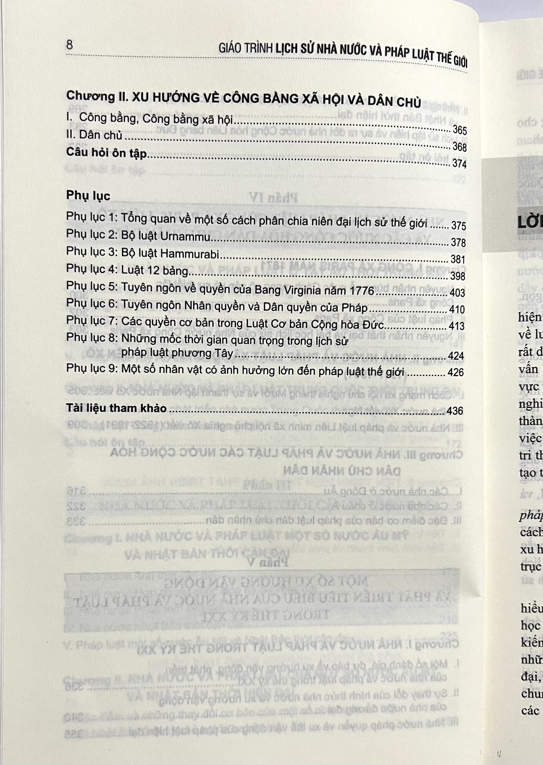 Nhà nước và pháp luật là hai hiện tượng quan trọng và rộng lớn nhất thuộc kiến trúc thượng tầng, hai hiện tượng này thường xuyên có sự vận động và biến đổi không ngừng.Nhà nước và pháp luật là hai hiện tượng quan trọng và rộng lớn nhất thuộc kiến trúc thượng tầng, hai hiện tượng này thường xuyên có sự vận động và biến đổi không ngừng. Lịch sử nhà nước và pháp luật nói chung và lịch sử nhà nước và pháp luật thế giới nói riêng là môn học cung cấp cho người học một cách nhìn tổng quan về quá trình phát sinh, tồn tại, phát triển cũng như xu hướng vận động của hai hiện tượng này từ quá khứ đến hiện tại.Môn học lịch sử nhà nước và pháp luật thế giới nhiều năm nay được giảng dạy tại Khoa Luật, Đại học Quốc gia Hà Nội và nhiều cơ sở đào tạo luật học khác trong cả nước. Giáo trình sẽ đáp ứng được một phần nhu cầu giảng dạy và học tập môn Lịch sử nhà nước và pháp luật thế giới của giáo viên và sinh viên, là tài liệu bổ ích cho tất cả những sinh viên, học viên cao học ngành luật học, các ngành khoa học xã hội và nhân văn, cũng như những ai quan tâm, muốn tìm hiểu một cách hệ thống những kiến thức cơ bản về lịch sử nhà nước và pháp luật thế giới.