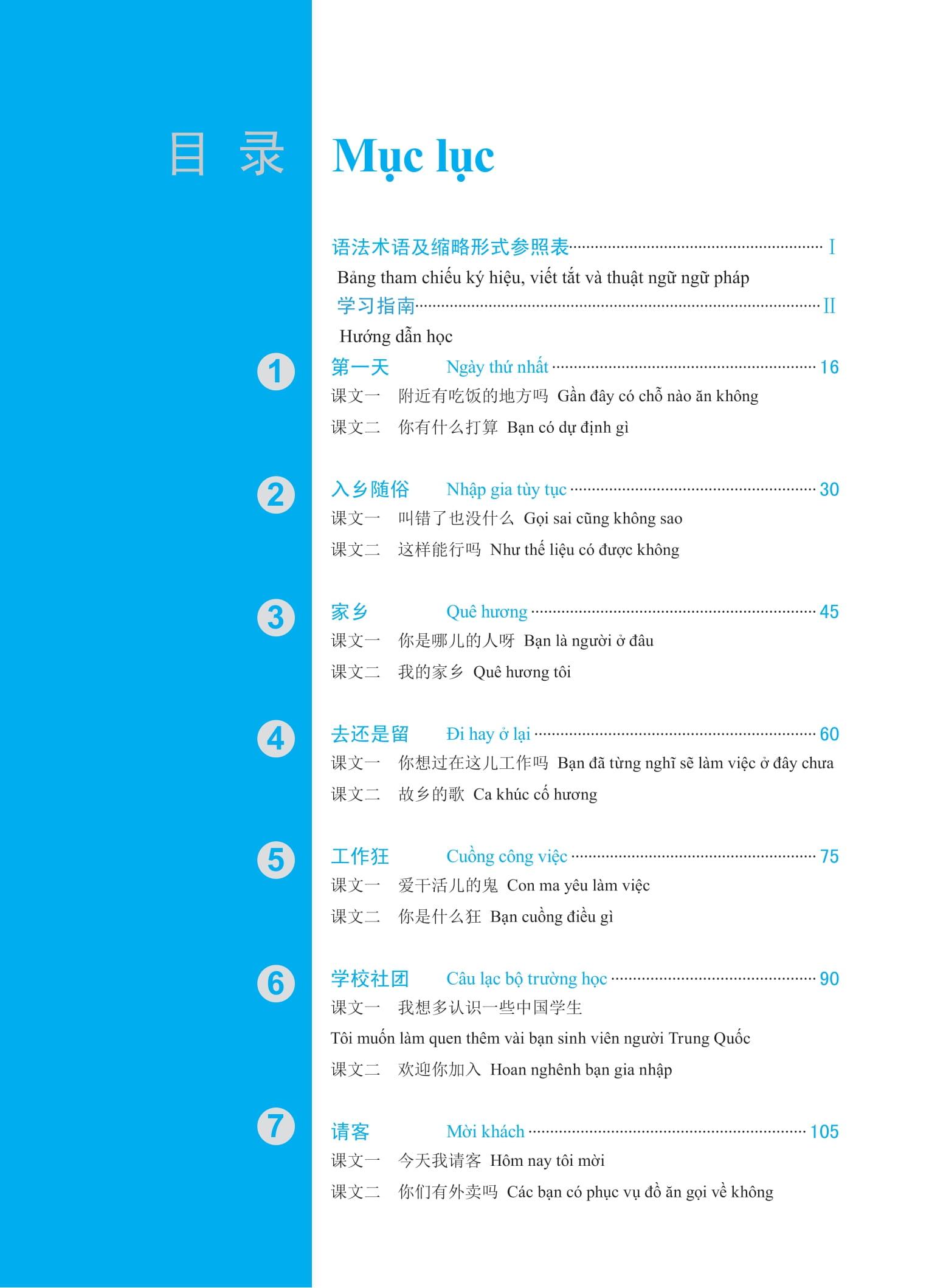 Cuốn sách này bao gồm 15 bài học với các chủ đề thực tế trong văn hóa giao tiếp của người Trung Quốc. Mỗi bài học có các phần sau: