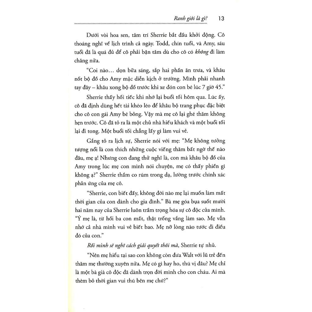 Ranh giới là “đường giới hạn” định nghĩa một người; nó định rõ điểm kết thúc của người này và điểm khởi đầu của người kia. Nếu biết rõ vị trí các ranh giới của một người, chúng ta có thể mong đợi họ biết cách kiểm soát bản thân. Chúng ta có thể đòi hỏi ở họ trách nhiệm đối với cảm xúc, hành vi và thái độ. Ví dụ, tất cả chúng ta đều từng thấy các cặp vợ chồng tranh cãi với nhau về việc “ai là người có lỗi”, mỗi người đều né tránh việc phải chịu trách nhiệm với người kia. Trong một mối quan hệ với ai đó, chúng ta có thể xác định những gì chúng ta mong đợi ở người kia, sau đó chúng ta có thể yêu cầu đối phương chịu trách nhiệm về phần mình. Khi mỗi người nắm quyền sở hữu một phần mối quan hệ, mối quan hệ sẽ bền vững, và tất cả chúng ta đều đạt được mục đích của mình.