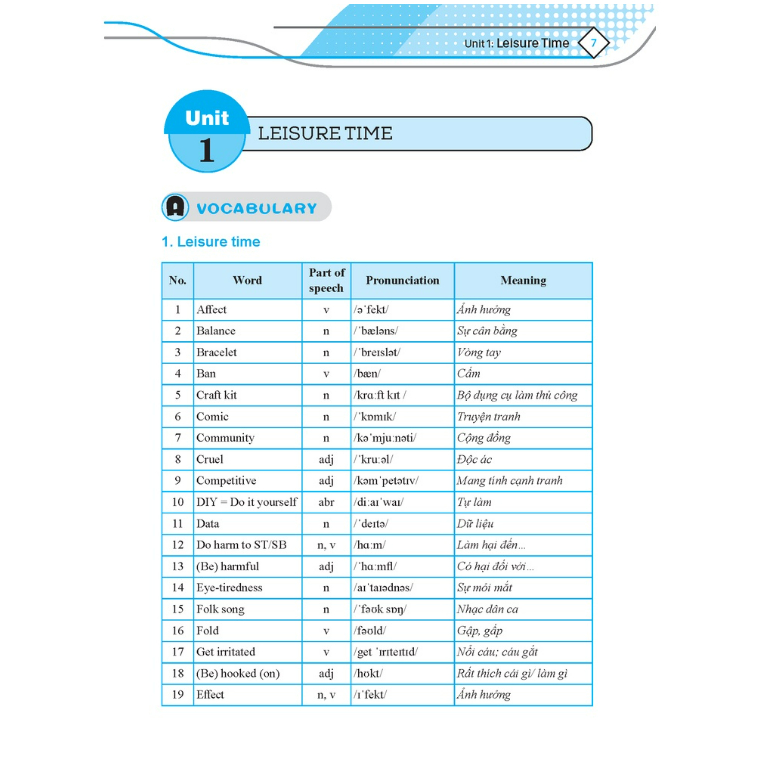 Bài tập bổ trợ và nâng cao Tiếng Anh được chia thành các đơn vị bài học bám sát chương trình mới nhất của Bộ Giáo dục và Đào tạo. Thông qua hệ thống các bài học với kiến thức bổ trợ nâng cao, cuốn sách hướng tới phát triển toàn diện kỹ năng ngôn ngữ cho các em học sinh. Đây không chỉ là tài liệu bổ trợ giúp các em củng cố kiến thức cơ bản sau các bài học trên lớp mà còn là công cụ hỗ trợ các em không ngừng mở rộng và nâng cao kiến thức. Bài tập bổ trợ và nâng cao Tiếng Anh được biên soạn với hệ thống bài tập vô cùng đa dạng. Mỗi đơn vị bài tập gồm 5 phần: I. Pronunciation (Phát âm Trọng âm) II. Vocabulary (Từ vựng): III. Grammar (Ngữ pháp ): IV. Reading (Kỹ năng đọc ) V. Writing (Kỹ năng viết) Sau mỗi đơn vị bài học là các đề kiểm tra 15 phút, kiểm tra giữa học kỳ và kiểm tra cuối học kỳ. Thông qua hệ thống đánh giá năng lực, các em có thể thử sức mình với hàng trăm câu hỏi bám sát đề trên lớp. Các bậc phụ huynh dễ dàng biết được sự tiến bộ của con em mình từng ngày