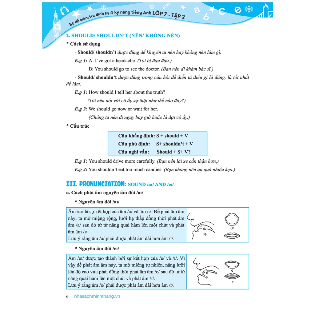 Trên hành trình tìm kiếm tri thức, các em thường xuyên phải đối mặt với các bài kiểm tra định kì, khiến các em cảm thấy căng thẳng, lo lắng và đôi khi kết quả không như mong đợi. Điều này không hẳn do các em chưa thật sự chăm chỉ hay không hiểu bài dẫn đến kết quả không đạt được như kỳ vọng, đôi khi còn phụ thuộc vào nhiều yếu tố như kĩ năng làm bài, kĩ năng quản lý thời gian hay chưa nắm được kết cấu đề Thấu hiểu được những khó khăn và những tình huống các em thường gặp phải, nhóm tác giả đã dành nhiều thời gian biên soạn “Bộ đề kiểm tra định kỳ 4 kỹ năng nghe - nói - đọc - viết Tiếng Anh lớp 7” nhằm rên luyện cho các em kĩ năng làm bài thi, làm chủ các dạng đề, hiểu được kết cấu và cách thức ra đề của từng kỳ thi. Khi các em đã quen với các dạng bài tập và trải nghiệm làm đề thường xuyên thì việc tự tin trước các kỳ thi là điều hiển nhiên có được.