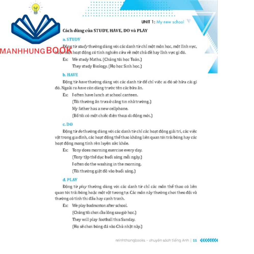 Phần Thực hành ngôn ngữ được trình bày một cách chi tiết, khoa học theo ba phần: Từ vựng–Ngữ âm–Ngữ pháp giúp các em vận dụng các kiến thức trong phần Lý thuyết.