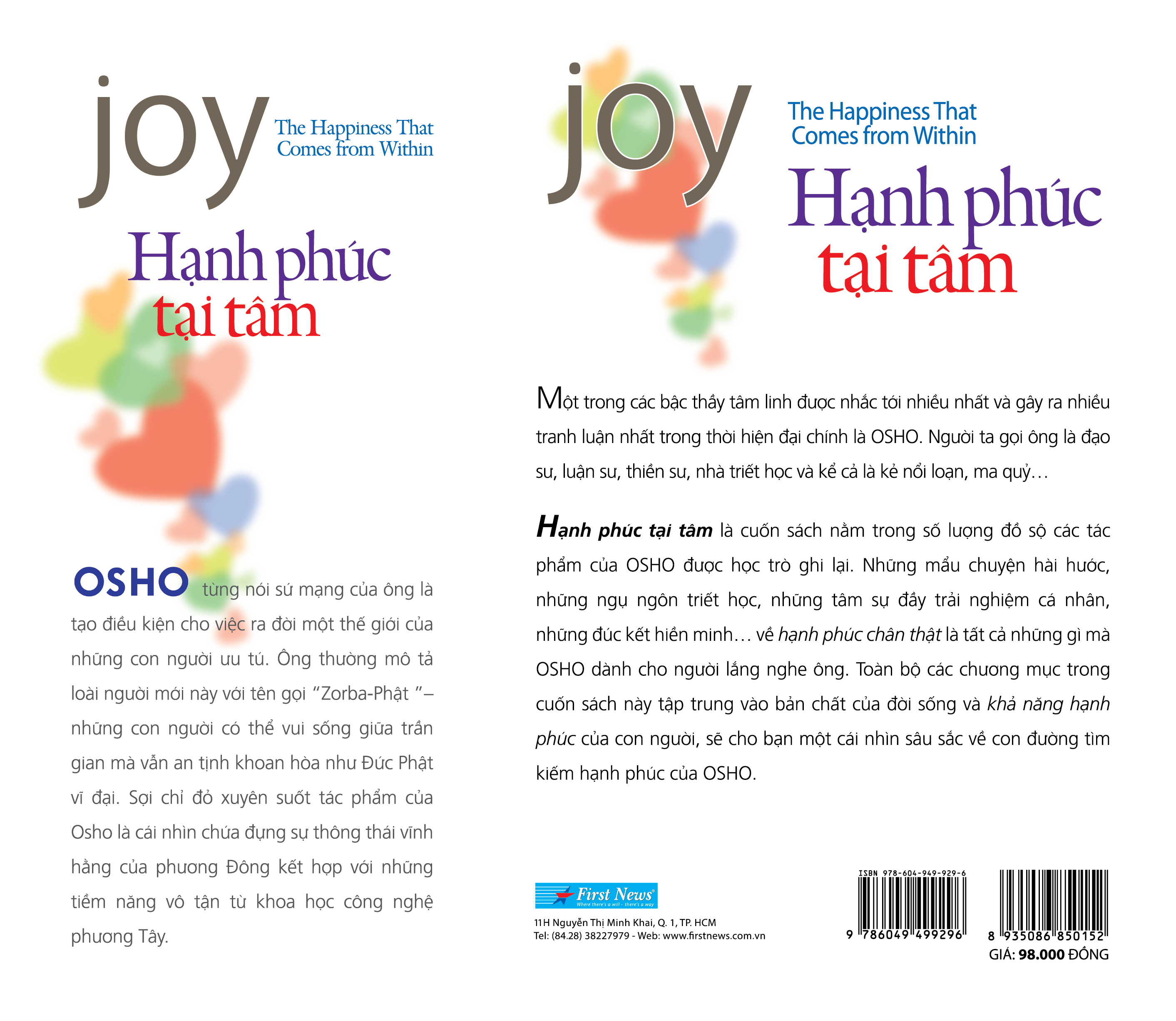 Tác phẩm Hạnh phúc tại tâm (JOY: The Happiness That Comes from Within) mà bạn đang cầm trên tay cũng là một trong số những tâm tình thánh thiện đó. Osho từng nói sứ mạng của ông là tạo điều kiện cho việc ra đời một thế giới của những con người ưu tú. Ông thường mô tả loài người mới này với tên gọi “Zorba-Phật” – những con người có thể vui sống giữa trần gian mà vẫn an tịnh khoan hòa như Đức Phật vĩ đại.