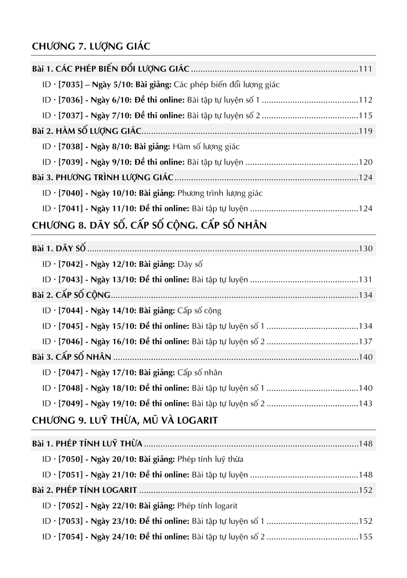 - Bài tập có lời giải dạng text kết hợp video theo mã ID Sách ôn thi đánh giá năng lực Hà Nội HSA - Tổng ôn phần toán học và xử lý số liệu gồm 15 Chương : CHƯƠNG 1. SỐ HỌC. BIỂU THỨC ĐẠI SỐ CHƯƠNG 2. MỆNH ĐỀ VÀ TẬP HỢP CHƯƠNG 3. HÀM SỐ VÀ ĐỒ THỊ HÀM SỐ CHƯƠNG 4. PHƯƠNG TRÌNH. BẤT PHƯƠNG TRÌNH. HỆ PHƯƠNG TRÌNH.HỆ BẤT PHƯƠNG TRÌNH CHƯƠNG 5. HỆ THỨC LƯỢNG TRONG TAM GIÁC CHƯƠNG 6. PHƯƠNG PHÁP TOẠ ĐỘ TRONG MẶT PHẲNG CHƯƠNG 7. LƯỢNG GIÁC CHƯƠNG 8. DÃY SỐ. CẤP SỐ CỘNG. CẤP SỐ CHƯƠNG 9. LUỸ THỪA, MŨ VÀ LOGARIT CHƯƠNG 10. GIỚI HẠN ĐẠO HÀM CHƯƠNG 11. HÌNH HỌC KHÔNG GIAN CHƯƠNG 12 . KHẢO SÁT HÀM SỐ VÀ ỨNG DỤNG CHƯƠNG 13 . NGUYÊN HÀM TÍCH PHÂN CHƯƠNG 14. PHƯƠNG PHÁP TOẠ ĐỘ TRONG KHÔNG GIAN CHƯƠNG 15. THỐNG KÊ XÁC SUẤT VÀ TOÁN TƯ DUY Cuốn sách có đầy đủ các dạng toán ôn thi đánh giá năng lực của đại học Quốc Gia Hà Nội với khoảng hơn 3000 bài toán trắc nghiệm điển hình nhất, tinh tế và đặc sắc nhất, bao quát tất cả các dạng toán, dạng thức câu hỏi của phần toán học và xử lí số liệu ôn tập cho kì thi đánh giá năng lực ĐHQG Hà Nội (dạng thức câu hỏi trắc nghiệm bốn phương án và dạng thức câu hỏi trắc nghiệm điền đáp án). Các bài tập được sưu tầm, trích dẫn, chọn lọc kĩ càng từ các khóa học chính thức của hệ thống giáo dục Moon các tài liệu tham khảo tự luận, các đề thi thử của các trường THPT trên khắp cả nước trong những năm vừa qua, các tài liệu dưới dạng ebook trên internet, các bài toán hay trên nhóm học tập. Với số lượng bài tập lớn, phong phú và đa dạng, được phân chia chi tiết theo các chủ đề, dạng toán từ cơ bản đến nâng cao, các bài tập cũng được sắp xếp theo thứ tự, mức độ khó tăng dần và có đáp án và lời giải chi tiết bằng cách tra ID trên Moon dưới ứng dụng của cuộc cách mạng công nghệ 4.0 và trí tuệ nhân tạo, tác giả hy vọng rằng đây là cuộc cách mạng sách, hướng tới mục tiêu giúp các bạn học sinh rèn luyện cho mình kỹ năng học và tự học mọi lúc, mọi nơi để có thật nhiều kiến thức không chỉ phục vụ cho những kỳ thi ở trên ghế nhà trường mà xa hơn là khả năng tự học những kiến thức từ cuộc sống, công việc của chính mình, trở thành một người làm chủ kiến thức và có ích cho xã hội.