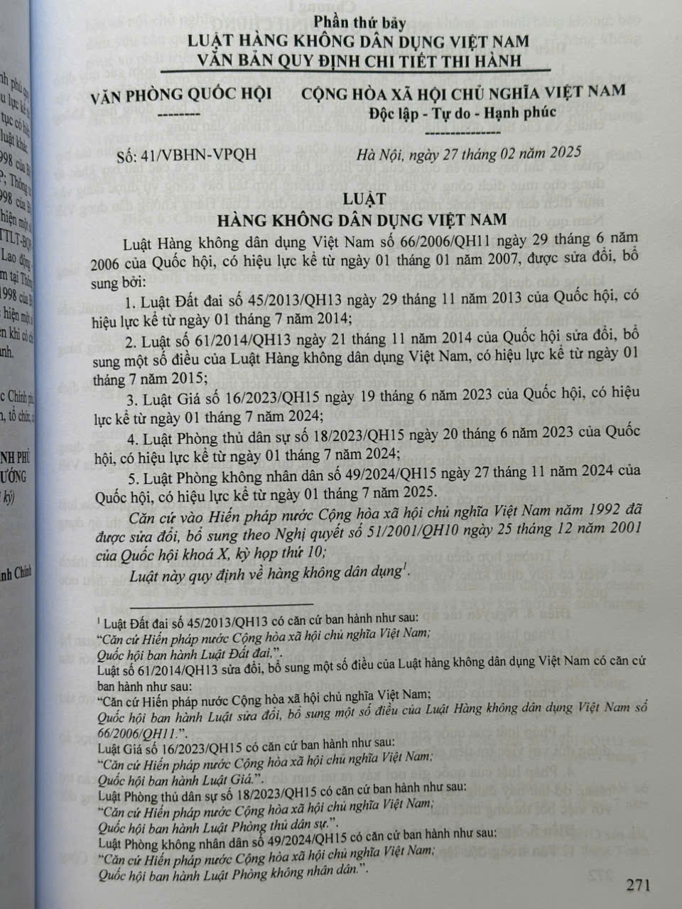 Phần thứ bảy. LUẬT HÀNG KHÔNG DÂN DỤNG VIỆT NAM VÀ VĂN BẢN QUY ĐỊNH CHI TIẾT THI HÀNH