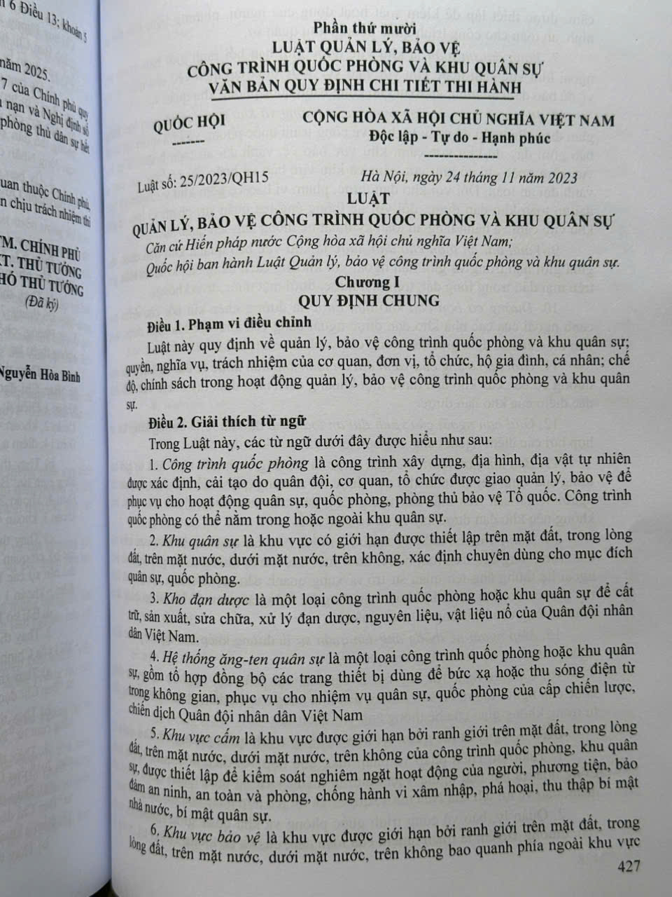 Phần thứ mười. LUẬT QUẢN LÝ, BẢO VỆ CÔNG TRÌNH QUỐC PHÒNG VÀ KHU QUÂN SỰ – VĂN BẢN QUY ĐỊNH CHI TIẾT THI HÀNH