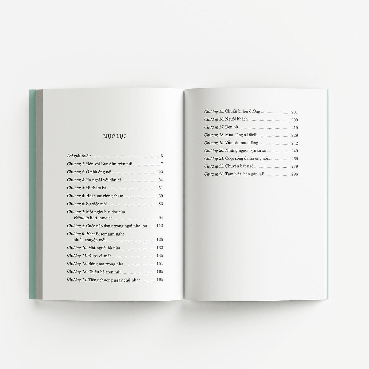 GIỚI THIỆU TÁC GIẢ: Johanna Spyri là nhà văn nữ nổi tiếng chuyên viết truyện thiếu nhi, sinh ngày 12 tháng 6 năm 1827 tại Hirzel, Thụy Sĩ. Tình yêu với trẻ thơ và vùng thôn dã đã mang đến nhiều chất liệu cho các sáng tác sau này của bà.