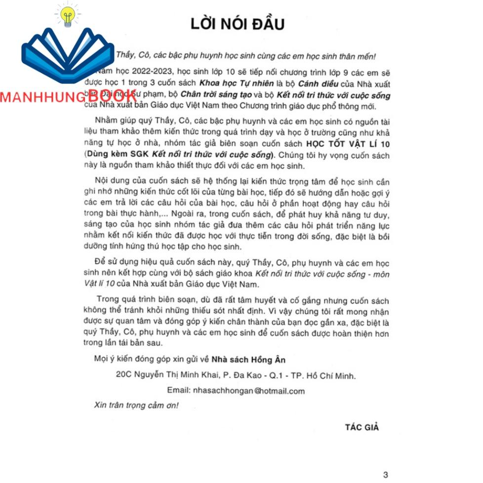 Nhằm giúp quý Thầy, Cô, các bậc phụ huynh và các em học sinh có nguồn tài liệu tham khảo thêm kiến thức trong quá trình dạy và học ở trường cũng như khả năng tự học ở nhà, nhóm tác giả biên soạn cuốn sách Học Tốt Vật Lí 10 (Dùng Kèm SGK Kết Nối Tri Thức Với Cuộc Sống). Chúng tôi hy vọng cuốn sách này là nguồn tham khảo thiết thực đối với các em học sinh.