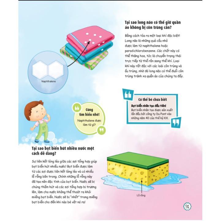- 6 chương của cuốn sách sẽ mở ra những điều thú vị và trả lời những thắc mắc của con về: Cơ thể người, hệ mặt trời, công nghệ, khoa học, động vật, tự nhiên.