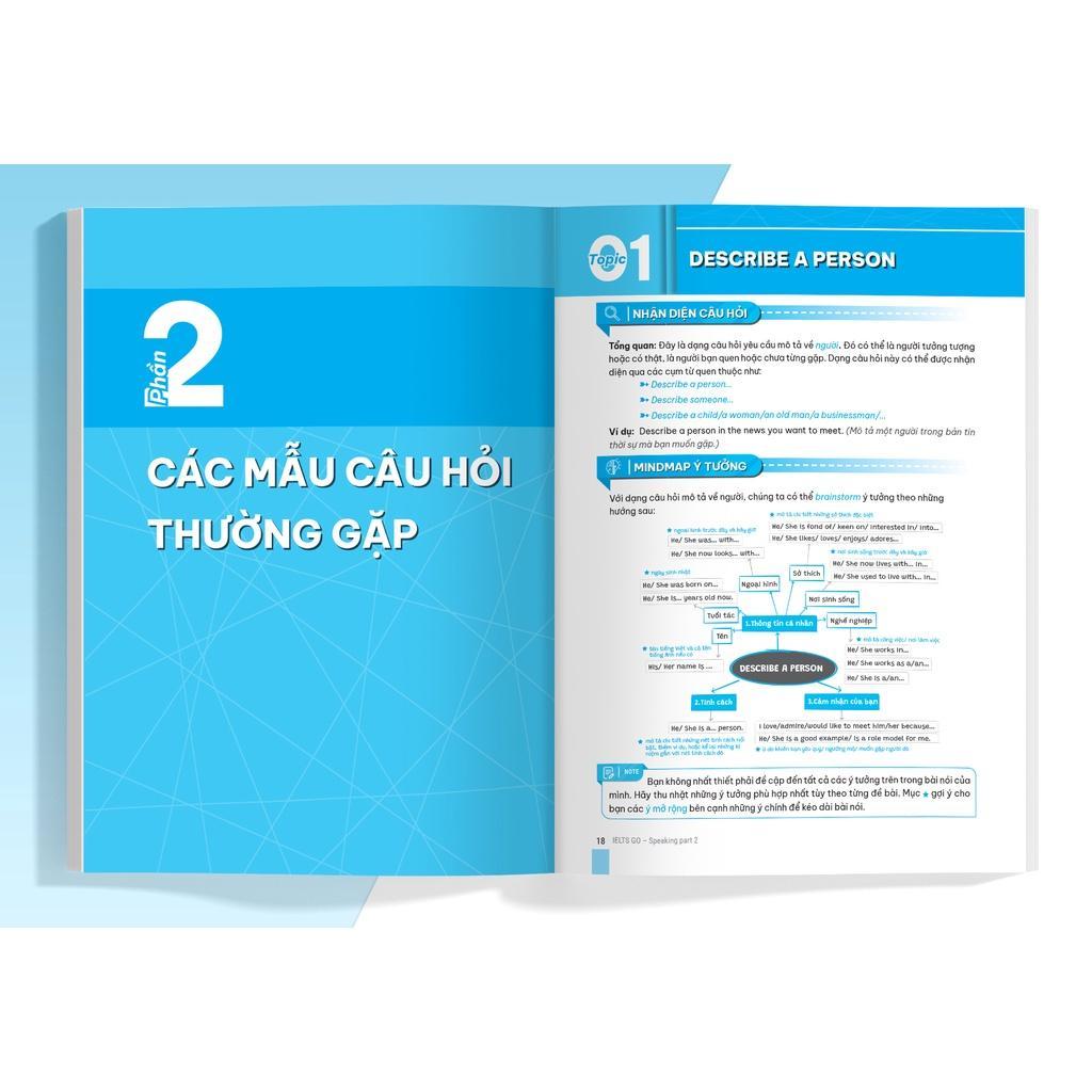 Bộ sách IELTS GO gồm 2 cuốn dành cho các bài thi IELTS Speaking part 2 và Writing task 2. Đây là 2 phần thi chiếm nhiều điểm và cũng được đánh giá là các phần thi khó nhằn nhất, vậy nên, việc chú trọng và dành nhiều thời gian để ôn tập và rèn luyện 2 phần thi này sẽ giúp bạn nắm chắc kiến thức, cũng như định hướng được những ý chính trong bài làm của mình. Bộ sách IELTS GO sẽ giúp bạn có nhiều ý tưởng khi trả lời các câu hỏi Speaking part 2 và lên dàn ý cho bài viết Writing task 2 để tiết kiệm thời gian và đạt điểm thi tốt nhất.