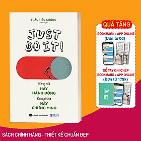 - Biết cách thực hiện nhưng lại không làm được Vậy những phiền não này bắt nguồn từ đâu? Làm thế nào để xoá bỏ được chúng? Thông qua trải nghiệm của chính mình, tác giả đã tìm ra câu trả lời cho những câu hỏi trên chính là: thiết lập một kế hoạch thúc đẩy động lực, tạo nên tâm thái “hãy cứ làm đi” để xoá tan sự lo lắng và căng thẳng trong tâm hồn. Nội dung cuốn sách Just do it - Đừng nói hãy hành động, đừng hứa hãy chứng minh Cuốn sách được chia làm 5 chương: Chương 1: Viết một bức thư gửi chính mình của năm năm sau Chương 2: Để ước mơ đi vào hiện thực Chương 3: Ngẩng đầu nhìn đường và cúi đầu đi đường Chương 4: Làm thế nào để nuôi dưỡng một thói quen tốt? Chương 5: Sống một ngày như thế nào thì sống cả năm như thế đấy Không phải lối hành văn nhàm chán và cũ kỹ như những cuốn sách về xây dựng kế hoạch khác, xuyên suốt 5 chương sách là câu chuyện của Tiểu Cường – một chàng trai 30 tuổi làm nghề IT, năm nào cũng đề ra cho mình một bản kế hoạch năm siêu hoành tráng, nhưng năm nào anh cũng chỉ duy trì bản kế hoạch được một thời gian rồi nửa đường đứt gánh. Chưa bao giờ anh có thể hoàn thành hết những mục tiêu mà mình đã đặt ra. Về sau, Lão Phó – vị sếp cũ của Tiểu Cường, đã cùng đồng hành với anh lập nên một kế hoạch năm làm “rung động lòng người”. Lão Phó giúp Tiểu Cường tìm ra nguyên nhân khiến anh không thể thực hiện được kế hoạch năm, đồng thời mở rộng tầm nhìn tới 5 năm sau, đề ra mục tiêu cụ thể cho năm tiếp theo, xây dựng kế hoạch theo từng dự án và thói quen, sắp xếp thứ tự công việc hằng ngày.