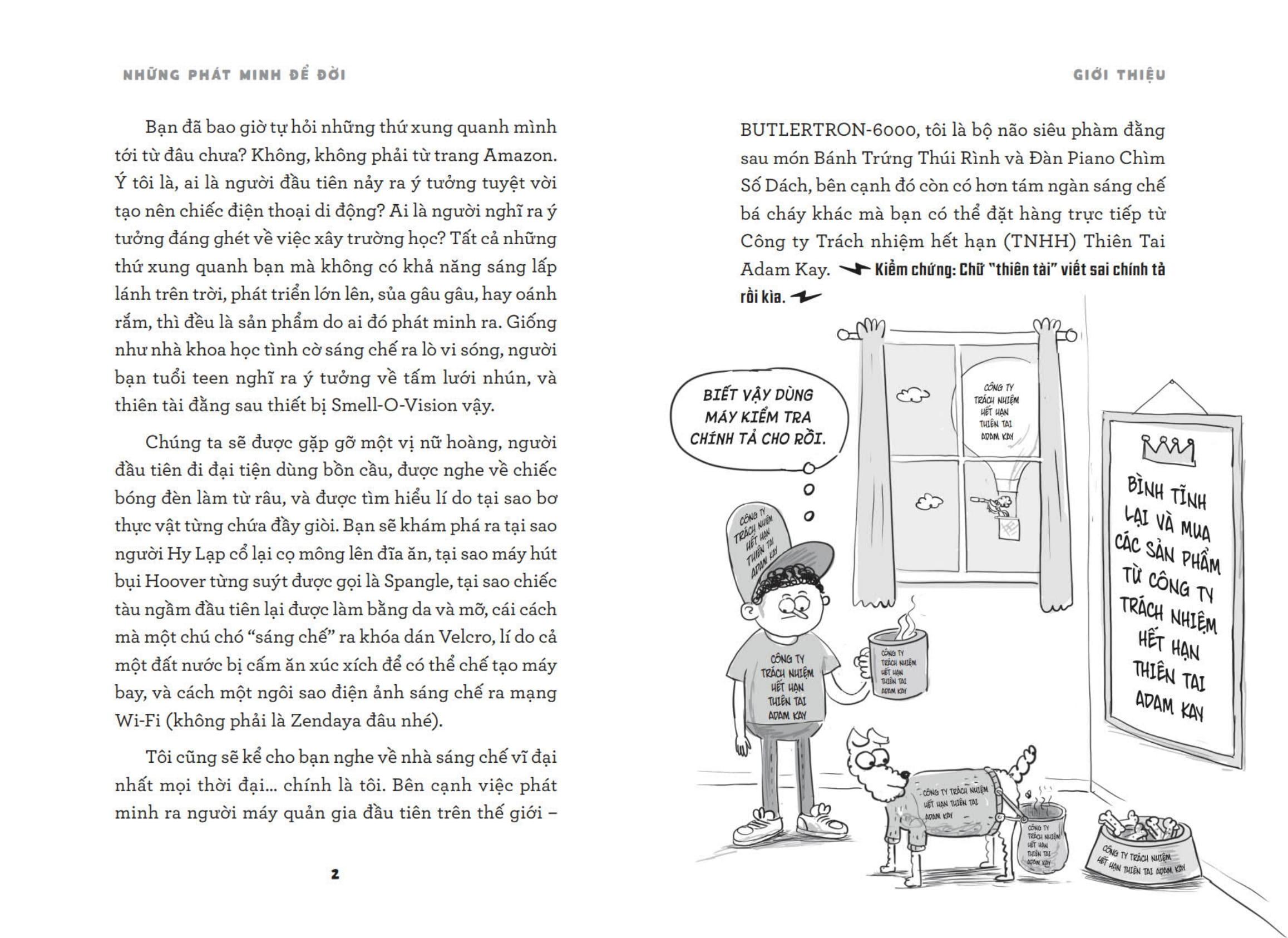 Kay’s Incredible Inventions - Những Phát Minh Để Đời Bạn đã bao giờ tự hỏi mọi thứ xung quanh m.ình đến từ đâu không? Ai là người đã nghĩ ra mấy thứ siêu việt như trò chơi điện tử, hoặc… ai là thiên tài đã “phát minh” ra trường học (phiền phức muốn xỉu)? Những Phát Minh Để Đời mang đến câu chuyện lịch sử các phát minh của loài người, ví dụ như: Tại sao người Hy Lạp cổ đại lại lau mông bằng… đĩa ăn? Chuyện “giải quyết nỗi buồn” của nữ hoàng dẫn đến… chiếc bồn cầu đầu tiên như thế nào? Làm sao một chú chó lại vô tình tạo ra… khóa dán velcro? Nào, hãy cùng khám phá 48.762.851.208 sự thật kì quặc (ước lượng thôi nhá!) về phát minh, từ NGỚ NGẨN đến KINH TỞM và thậm chí là NGUY HIỂM RỢN TÓC GÁY trong cuốn sách mới nhất của tác giả Adam Kay nhé!