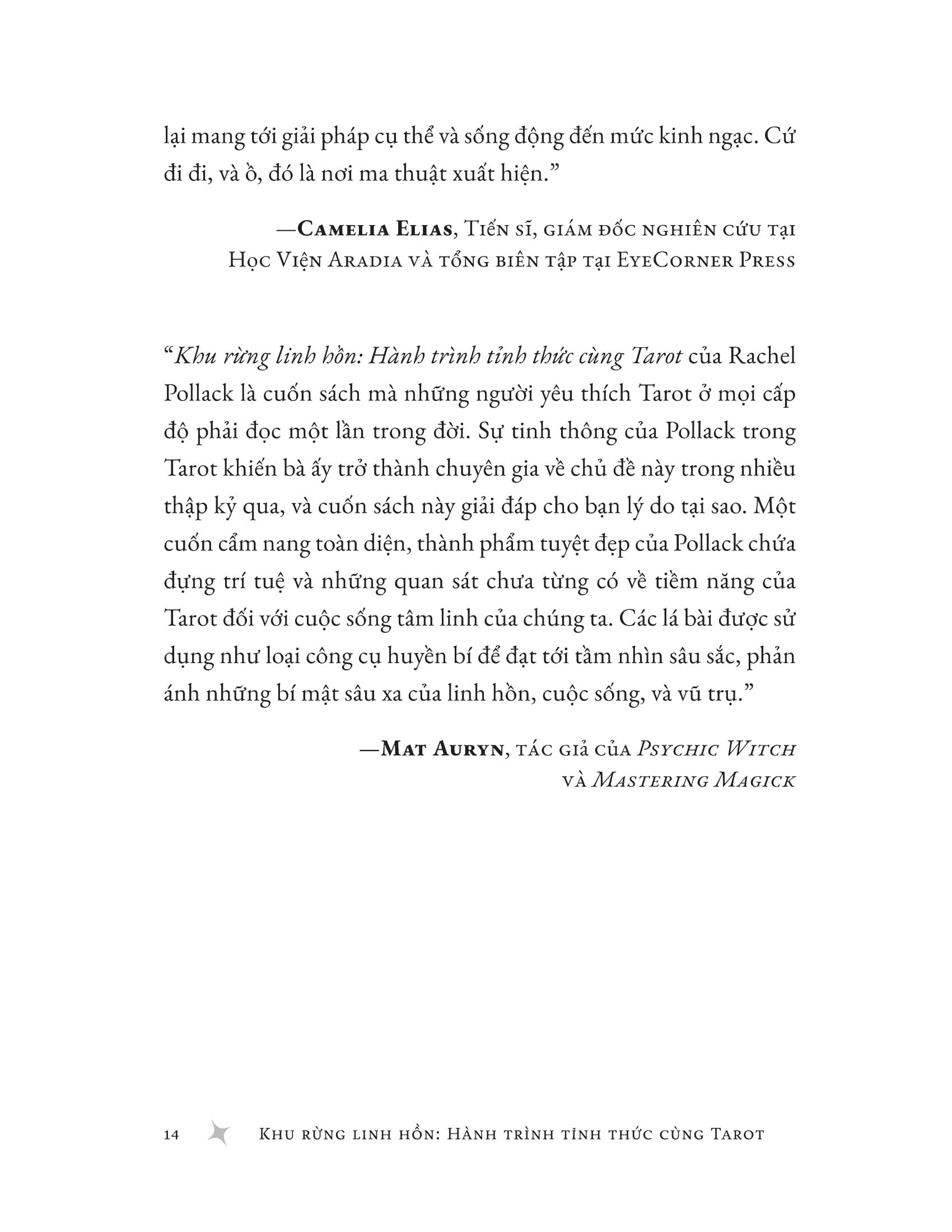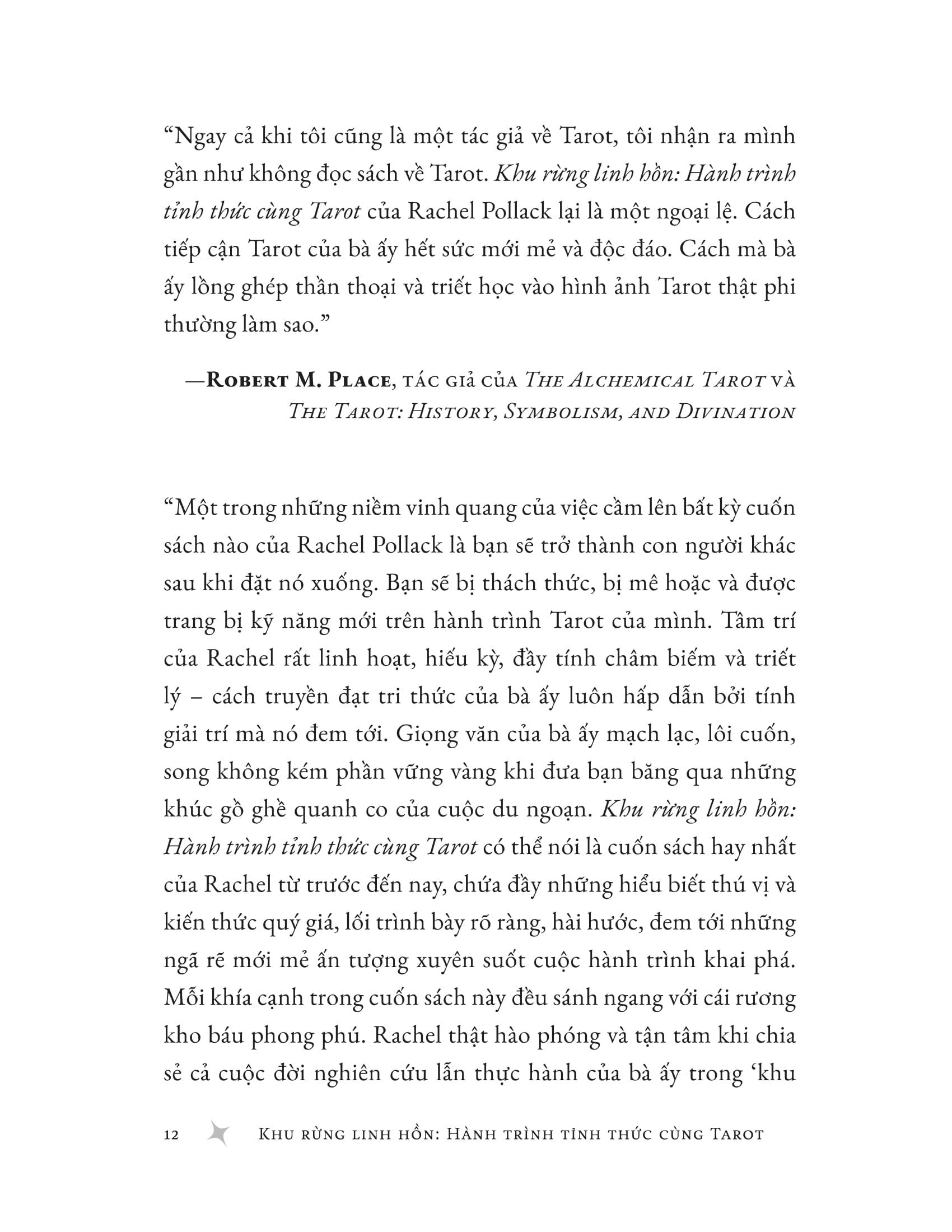 Mua tại Tiktokkhu rừng linh hồn - hành trình tỉnh thức cùng tarot dành cho những người tìm kiếm con đường tâm linh, khu rừng linh hồn: hành trình tỉnh thức cùng tarot mở ra một lối đi khác biệt với các sách dạy “cách đọc bài” thông thường. thay vì diễn giải từng lá bài, chuyên gia tarot rachel pollack mời bạn dạo bước trong khu rừng tarot, nơi mà bạn sẽ bắt gặp tất cả những biểu tượng cổ xưa, giải mã tiếng nói của chúng, và học cách kết nối với chiều sâu linh hồn m.ình. trong khu rừng này, bạn sẽ học được: