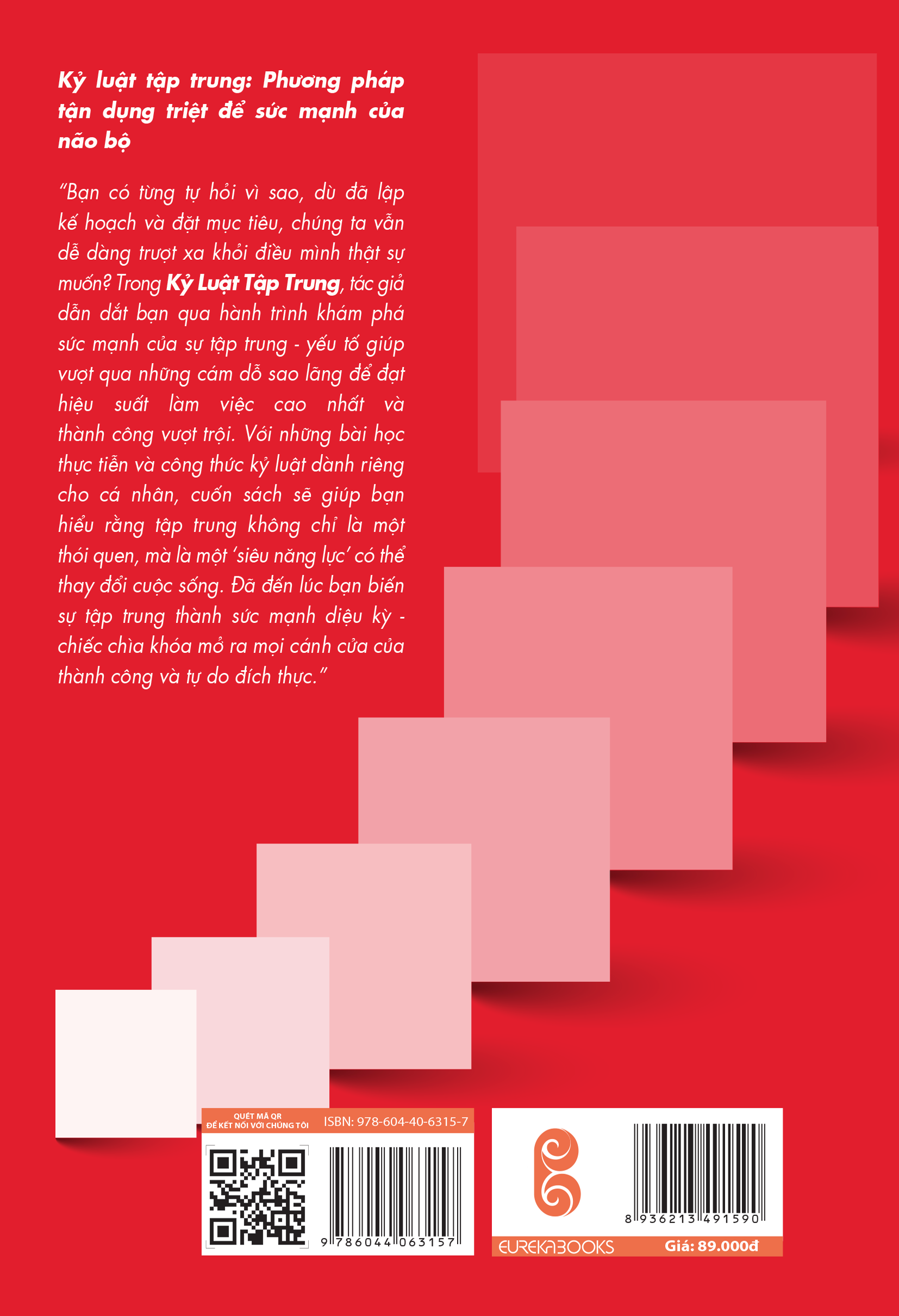 Trong Kỷ Luật Tập Trung, tác giả sẽ dẫn dắt bạn khám phá sức mạnh tiềm ẩn của sự tập trung – yếu tố giúp bạn vượt qua những cám dỗ xao nhãng để đạt được hiệu suất làm việc tối ưu và thành công vượt trội. Với những bài học thực tiễn và công thức kỷ luật dành riêng cho từng cá nhân, cuốn sách sẽ giúp bạn nhận ra rằng tập trung không chỉ là thói quen mà là một “siêu năng lực” có thể thay đổi cuộc sống. Đã đến lúc biến sự tập trung thành sức mạnh kỳ diệu – chiếc chìa khóa mở ra mọi cánh cửa của thành công và tự do đích thực.
