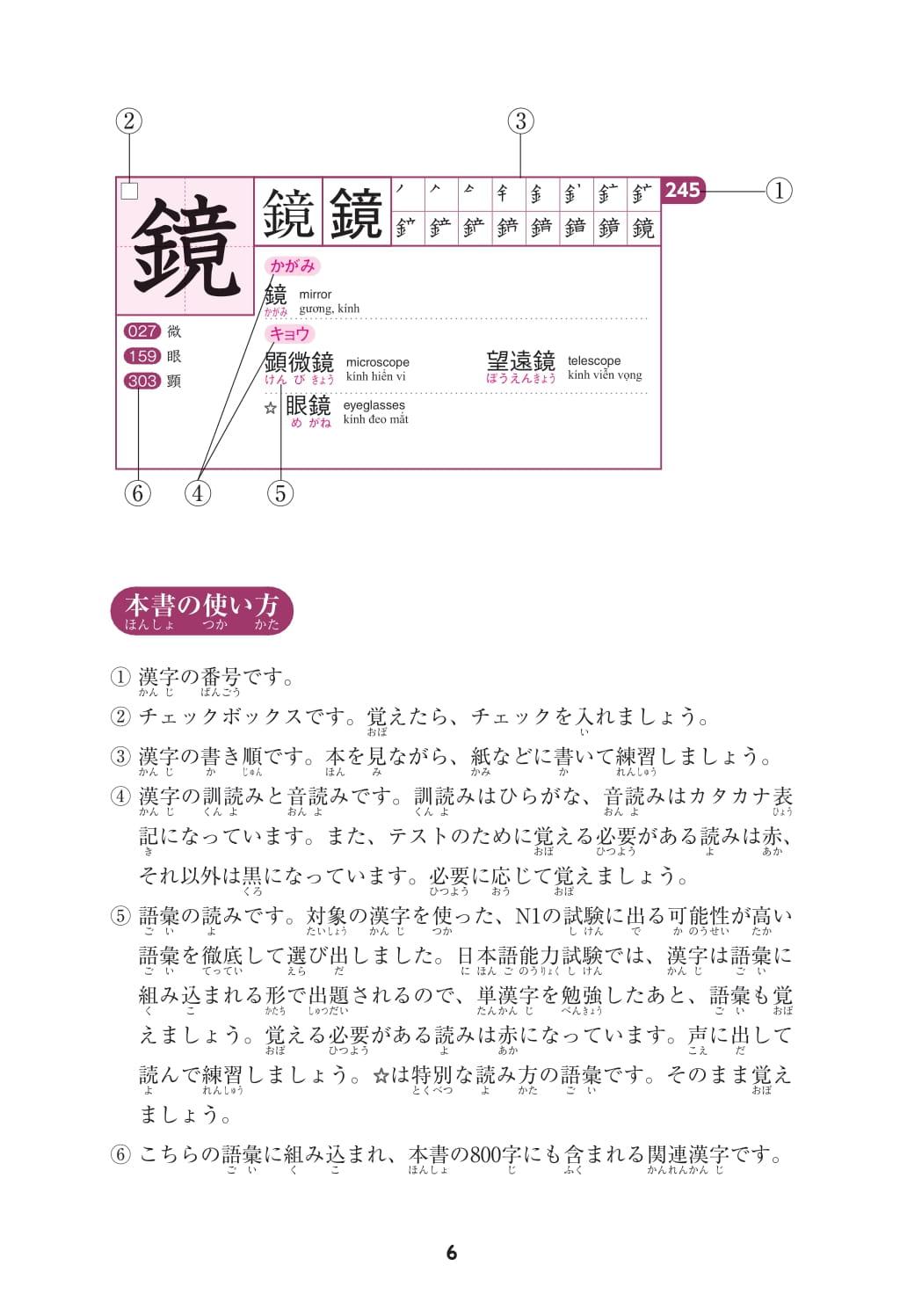 Kỳ Thi Năng Lực Nhật Ngữ - Sổ Tay Hán Tự N1 - 800 Bao gồm 800 chữ Hán tự thường được ra trong các Kỳ thi năng lực Nhật ngữ cấp độ N1. Bao gồm các đặc trưng: