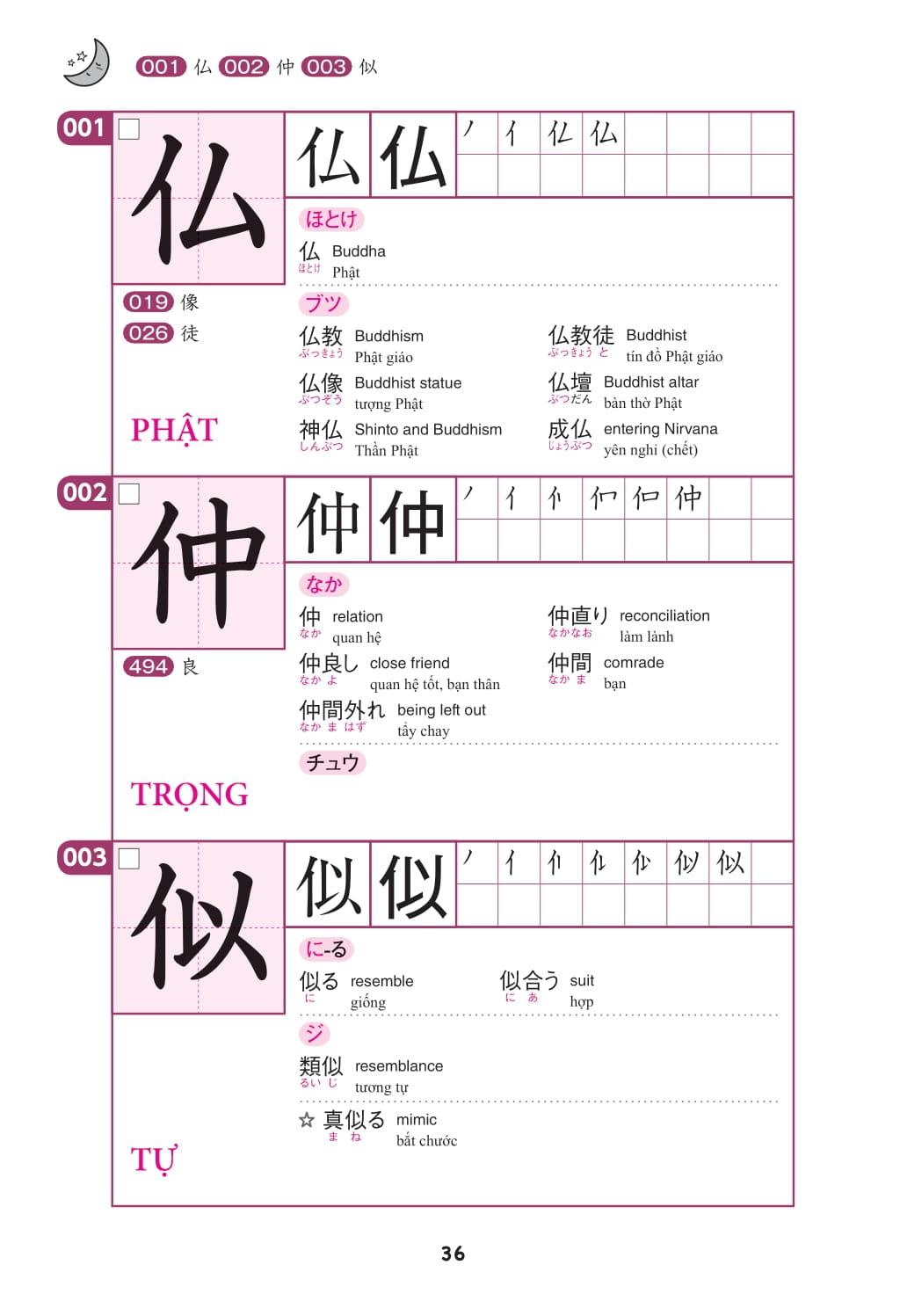 Các Hán tự được sắp xếp theo cùng một bộ chữ tương tự, giúp nhận ra sự khác biệt và hình dung ra hình dạng của mỗi chữ Hán tự hơn.