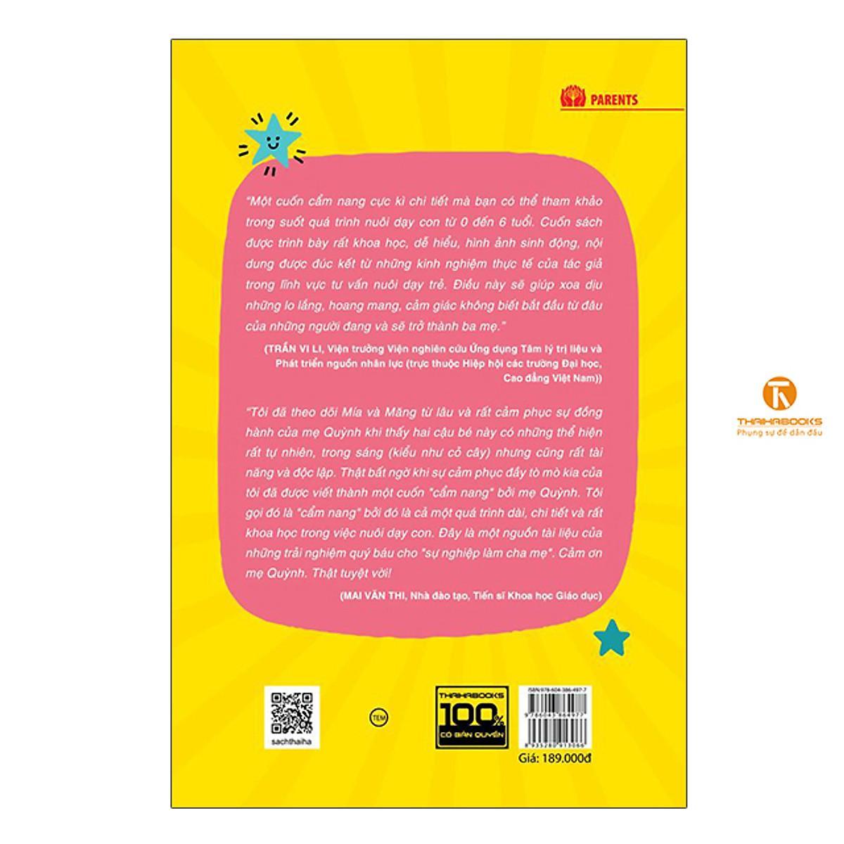 [ThaiHaBooks] Làm ba mẹ bắt đầu từ đâu? cung cấp cho ba mẹ những thông tin cơ bản về sự phát triển của bé từ khi mẹ bắt đầu mang thai cho đến khi bé 6 tuổi. Đây là giai đoạn vàng mà ba mẹ có thể tận dụng để phát huy tối đa tiềm năng của bé. Tuổi thơ của con trôi qua nhanh lắm, ba mẹ cố gắng đừng bỏ qua giai đoạn vàng này nhé!