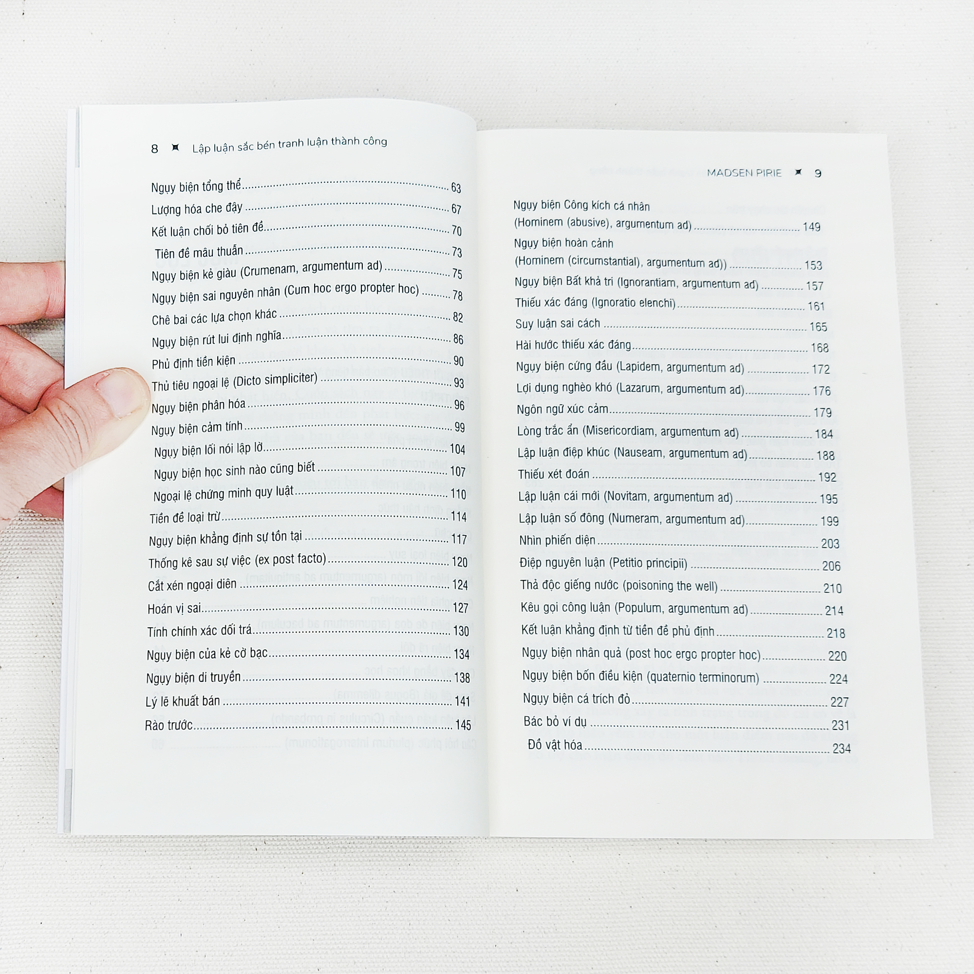 Trong cuốn sách dí dỏm và mang tính lan truyền này, Madsen Pirie cung cấp một hướng dẫn đầy đủ cách sử dụng – mà thực ra là lạm dụng – lý luận để giành chiến thắng trong mọi tranh luận. Ông xác định tất cả những ngụy biện thông dụng nhất trong tranh luận với các ví dụ mang sức mạnh hủy diệt. Chúng ta đều cho rằng mình là người có suy nghĩ rõ ràng và hợp lý nhưng sau khi đọc xong cuốn sách, ta sẽ nhận ra những ngụy biện mà mình sử dụng. Tác giả chỉ cho bạn thấy cách cùng lúc tăng cường sức mạnh cho suy nghĩ của bạn và tìm ra điểm yếu trong những lập luận của người khác. Và tinh quái hơn, Pirie còn chỉ cho bạn cách để trở nên phi lý một cách tinh tế mà không bị phát hiện. Cuốn sách này sẽ biến bạn trở thành một người thông minh đến phát bực: gia đình, bạn bè và các đối thủ của bạn đều sẽ ước ao rằng bạn chưa từng đọc nó.