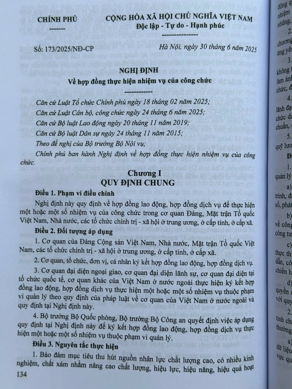 – Nghị định số 173/2025/NĐ-CP ngày 30 tháng 6 năm 2025 của Chính phủ về hợp đồng thực hiện nhiệm vụ của công chức…