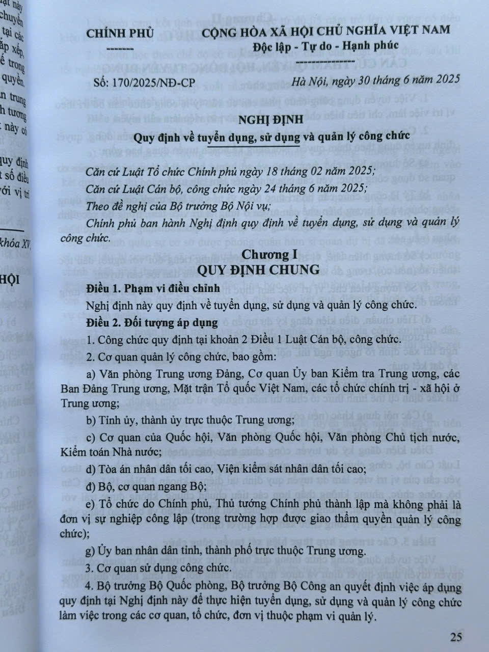 – Nghị định số 170/2025/NĐ-CP ngày 30 tháng 6 năm 2025 của Chính phủ quy định về tuyển dụng, sử dụng và quản lý công chức;