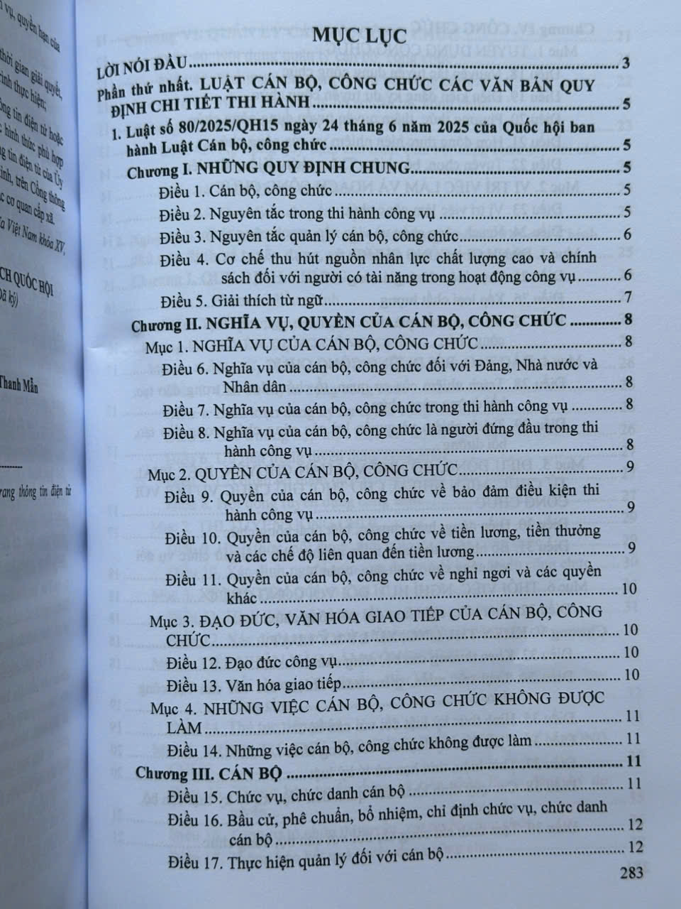 Phần thứ nhất. LUẬT CÁN BỘ, CÔNG CHỨC CÁC VĂN BẢN QUY ĐỊNH CHI TIẾT THI HÀNH (Luật số 80/2025/QH15 ngày 24 tháng 6 năm 2025 của Quốc hội ban hành Luật Cán bộ, công chức
