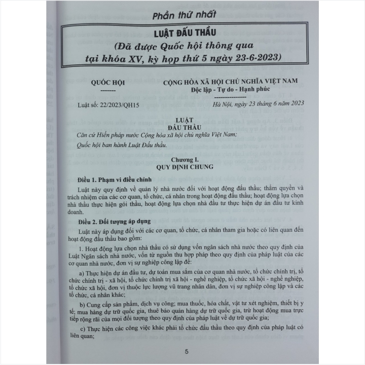 - Toàn bộ sách bìa mềm khổ lớn 20 x 28 cm phân phối bởi Nhà sách Nam Việt đều được bọc sách Plastic MIỄN PHÍ và xuất hóa đơn điện tử đầy đủ, nhanh chóng. …/… Lời giới thiệu: Ngày 23-6-2023 Quốc hội đã thông qua Luật Đấu thầu số 22/2023/QH15. Luật Đấu thầu này có hiệu lực từ ngày 01-01-2024. Dưới đây là một số nội dung đáng chú ý:
