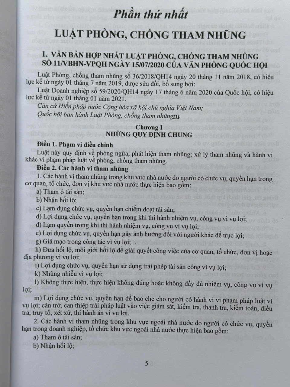 Phần thứ nhất. LUẬT PHÒNG, CHỐNG THAM NHŨNG
