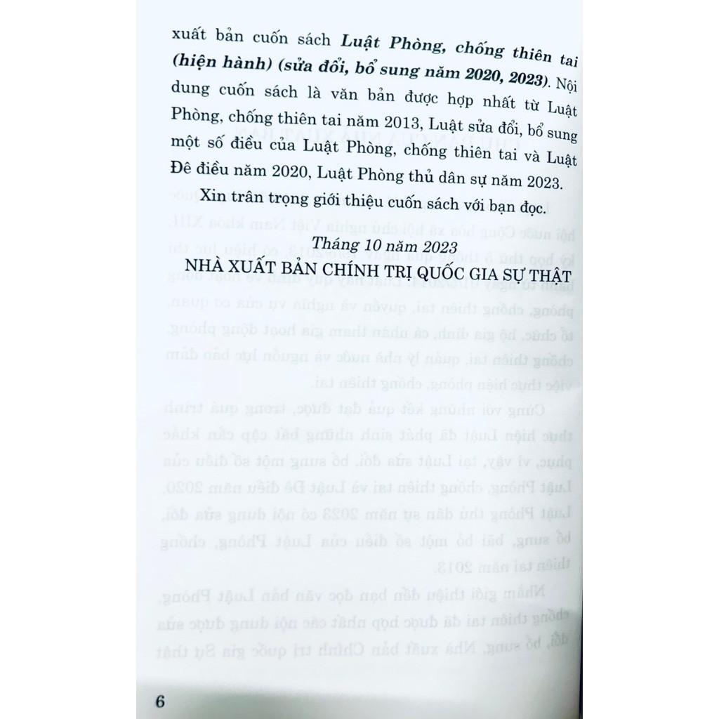 ✨Sách - Luật Phòng, Chống Thiên Tai (Hiện Hành) (Sửa Đổi, Bổ Sung Năm 2020, 2023) - NXB Chính Trị Quốc Gia