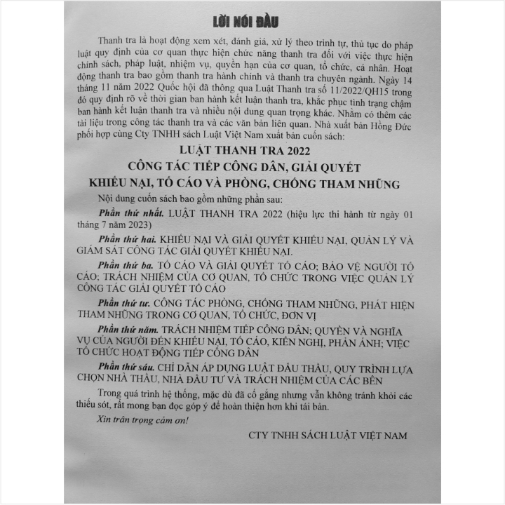 ✨Sách Luật Thanh Tra 2022 - Công Tác Tiếp Công Dân, Giải Quyết Khiếu Nại, Tố Cáo và Phòng Chống Tham Nhũng - V2267T