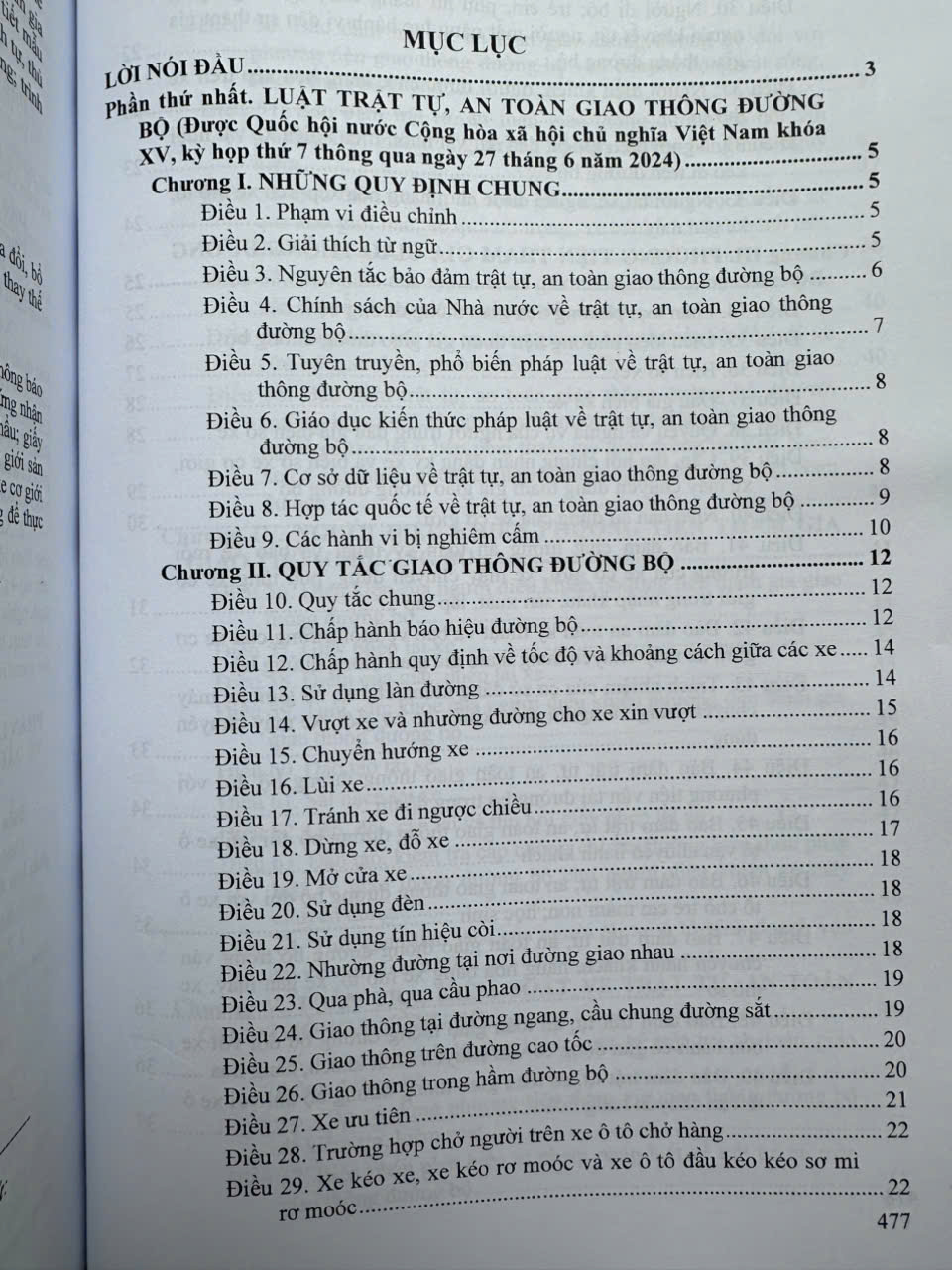 Chương II (Quy tắc giao thông đường bộ) gồm 24 điều, từ Điều 10 đến Điều 33
