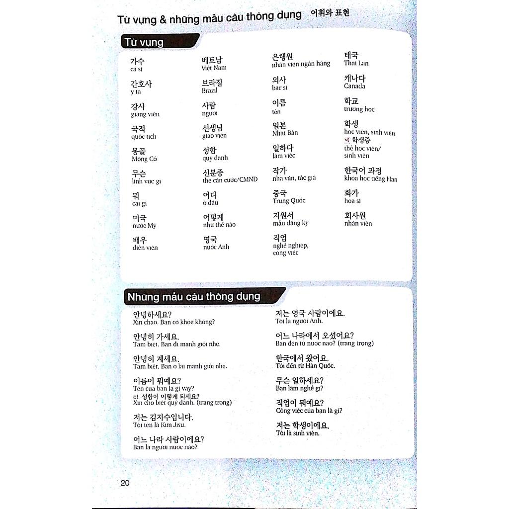 Tác Giả: Nhiều tác giả Ngày phát hành: 2018 Số trang: 160 Kích thước: 19 x 26 cm NXB: NXB Đại Học Quốc Gia Giá bìa: 142.000VND Mô tả sản phẩm: Luyện Kĩ Năng Nghe Tiếng Hàn - Dành Cho Người Mới Bắt Đầu (Kèm CD) Bộ giáo trình cung cấp những bài học được trình bày dễ hiểu theo cấp độ khó dần. Những người theo học tiếng Hàn quốc tế dễ dàng tìm thấy những từ vựng và mẫu câu thông dụng thiêt thực, và cả những lỗi giao tiếp thường hay mắc phải. Người học cũng cảm thấy rất hào hứng được tham gia ứng xử trong những tình huống phổ biến và quen thuộc trong cuộc sống hàng ngày. Bộ giáo trình gồm 2 cuốn: Luyện Kĩ Năng Nghe Tiếng Hàn cho người mới bắt đầu và Luyện Kĩ Năng Nghe Tiếng Hàn dành cho trình độ trung cấp. 20 bài học, tương ứng với 20 chủ đề cùng với những tình huống thường gặp trong cuộc sống hàng ngày. Mỗi chủ đề luôn được kết hợp với những bài tập để người học có thể áp dụng ngay những gì vừa được học, đồng thời để kiểm tra khả năng nghe và hiểu của mình trong thực tế. Ngoài ra, nhằm giúp người học củng cố vững chắc hiểu biết của họ xoay chủ đề của bài học đó, mỗi bài học, ngoài phần Luyện nghe là phần chính của giáo trình, đều được bổ sung thêm các bài tập nói trong phần Chuẩn bị, bài tập đọc hiểu và viết trong phần Luyện tập.