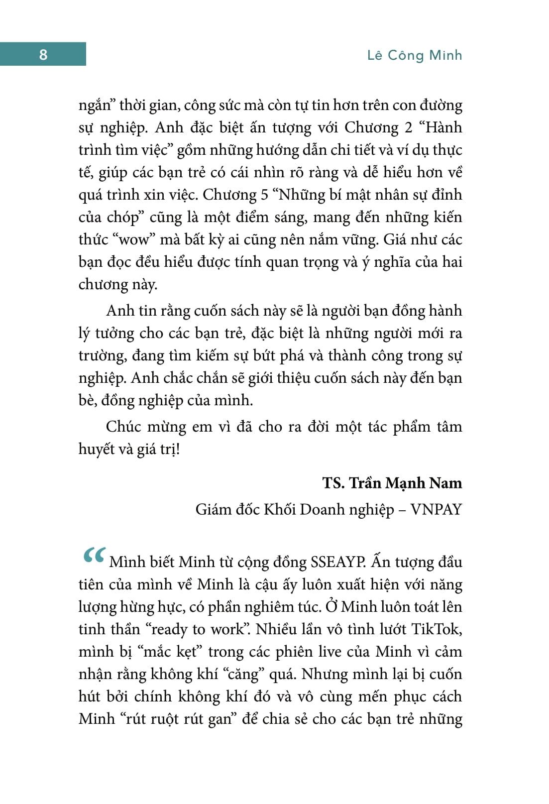 Dẫu bạn đang là sinh viên chuẩn bị tốt nghiệp, người mới đi làm, hay thậm chí là một nhân viên đã có vài năm kinh nghiệm, thì cuốn sách này sẽ sát cánh cùng bạn như một vị “MENTOR” đúng nghĩa. Hãy để những bài học, những mẹo nhỏ trong cuốn sách này dẫn dắt bạn trong những năm tháng đầu của sự nghiệp, mở lối tư duy và khám phá năng lực vô hạn của bản thân!