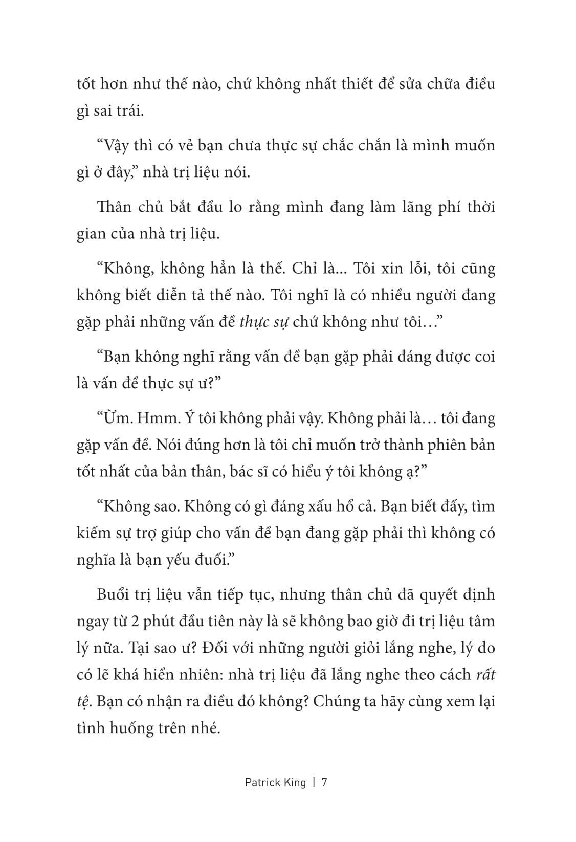 Trong thời đại ngày nay, nghệ thuật lắng nghe quả là một siêu năng lực. Nếu bạn có thể khiến người khác cảm thấy được lắng nghe và trân trọng, bạn đã mở ra con đường dẫn thẳng đến trái tim họ. Và tác giả Patrick King sẽ cho bạn thấy, làm chủ kỹ năng đó không hề phức tạp như bạn vẫn nghĩ!