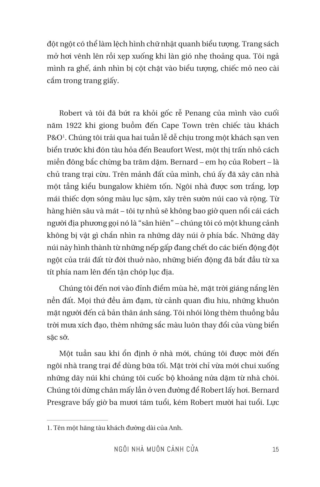“Ngôi nhà muôn cánh cửa” không chỉ liên quan đến chiến tranh và cách mạng, đến hôn nhân và bê bối, mà còn là câu chuyện của những đứt gãy c.hủng tộc, giới tính, khuynh hướng tính dục và quyền lực, liên tục đào sâu vào bản chất phức tạp của tình yêu và tình bạn, của trung thành và bội phản. Câu chuyện diễn ra tại Khu định cư Eo biển Penang, Mã Lai năm 1921, khi Lesley Hamlyn cùng chồng chuẩn bị đón tiếp “Willie” Somerset Maugham − văn sĩ lừng danh và cũng là bạn cũ của chồng bà. Đâu ai biết chuyến thăm ấy sẽ thay đổi cuộc sống của nhiều người. Maugham − một trong những tiểu thuyết gia vĩ đại nhất thời bấy giờ − đang rơi vào khánh kiệt, sự nghiệp xuống dốc, sức khỏe sa sút, ráo riết đi tìm chủ đề mới cho cuốn sách tiếp theo của m.ình. Cùng lúc đó, Lesley đang phải chịu đựng cuộc hôn nhân trên bờ vực đổ vỡ. Tình cờ biết được mối quan hệ trong quá khứ của Lesley với nhà cách mạng Trung Quốc Tôn Dật Tiên, Maugham quyết định điều tra sâu hơn và tưởng như chủ đề cho tác phẩm tiếp theo đã xuất hiện. Thế nhưng, khi tình bạn giữa hai người phát triển và Lesley tâm sự với ông về cuộc sống ở Eo biển Penang, Maugham phát hiện ra một câu chuyện còn bất ngờ hơn nhiều so với những gì ông tưởng... “Giống như con chim núi, một câu chuyện có thể mang tên ta vượt qua những áng mây, thậm chí vượt thời gian.”