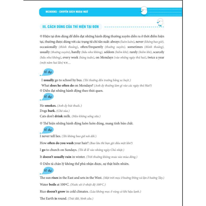 Bộ sách gồm 2 cuốn: tập 1 và 2, truyền tải toàn bộ hệ thống kiến thức ngữ pháp tiếng anh thông dụng được triển khai theo cấu trúc 80% cơ bản và 20% nâng cao.