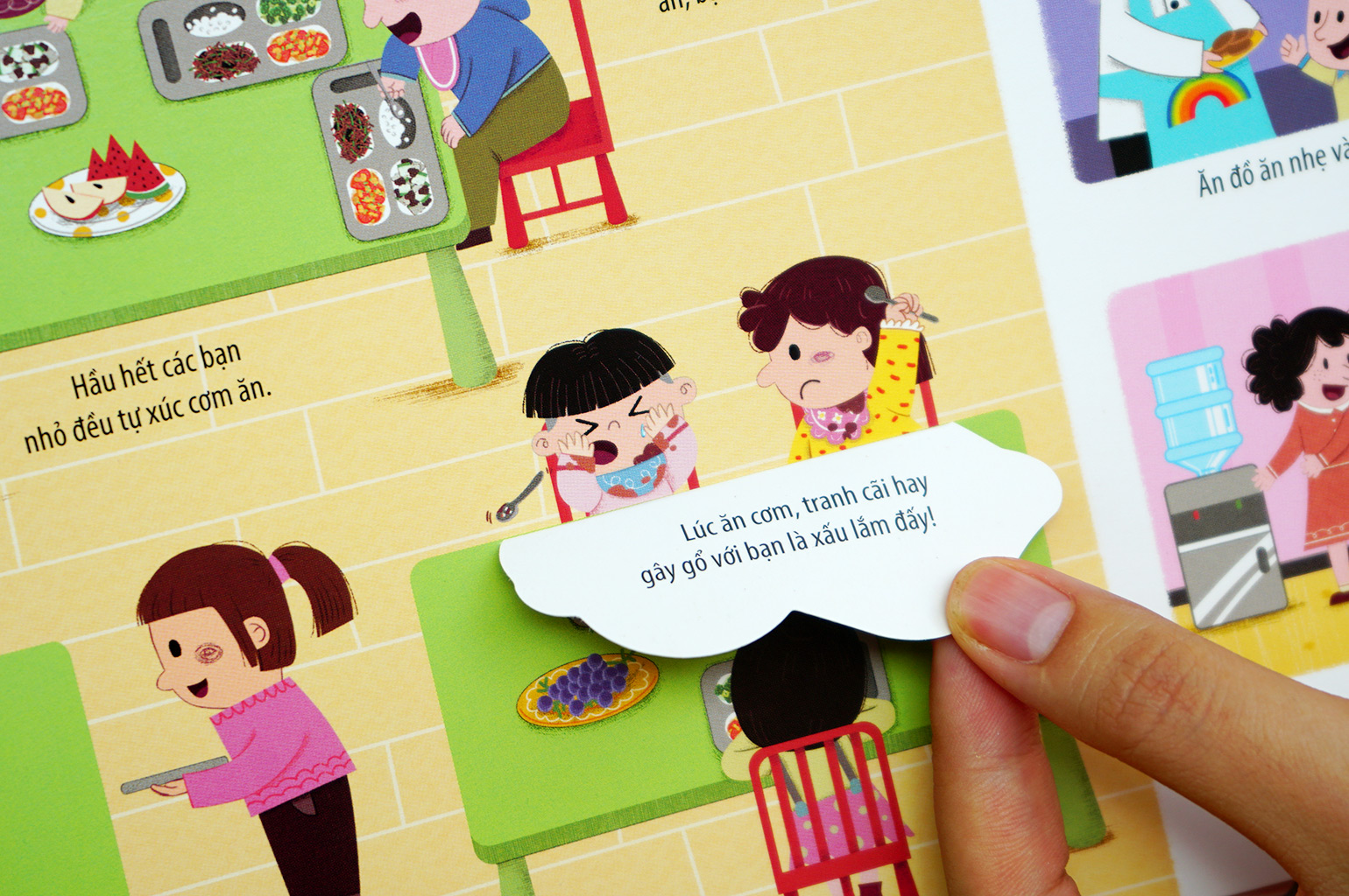 Cuốn sách còn có nhiều hình minh họa ngộ nghĩnh, thiết thực, được thiết kế đầy tinh tế, tỉ mỉ bằng các miếng LẬT - MỞ - KÉO - ĐẨY, giúp trẻ vừa chơi vừa học kiến thức.