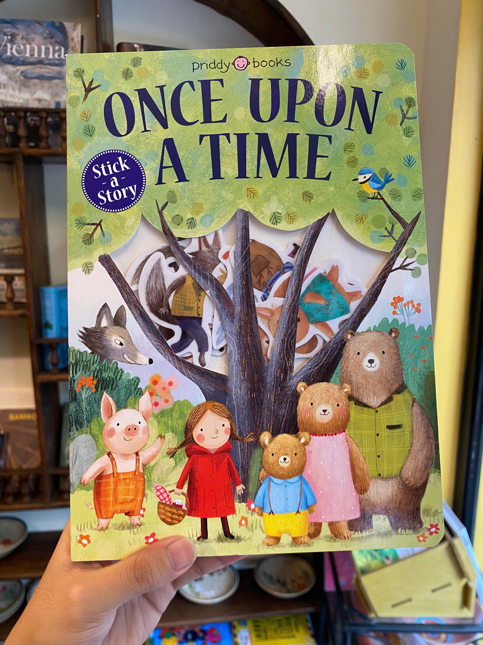 Once Upon a Time là một định dạng mới của Priddy Books. Sách có hình minh họa dễ thương và các miếng dán tái sử dụng được nhúng trong bìa, có thể sử dụng ở bất kỳ đâu trong sách. Trẻ em có thể sử dụng các miếng dán nhân vật cổ tích để tạo ra bốn cảnh dựa trên những câu chuyện quen thuộc với trẻ em. Mỗi cảnh đều có nhãn dán liên quan đến một cảnh cụ thể, hoặc các em có thể thỏa sức dán các miếng dán khác nhau và tự sáng tạo nên câu chuyện của riêng mình. Những miếng dán chắc chắn này có thể dính trên mọi bề mặt mà không để lại dấu vết và có thể tái sử dụng nhiều lần.