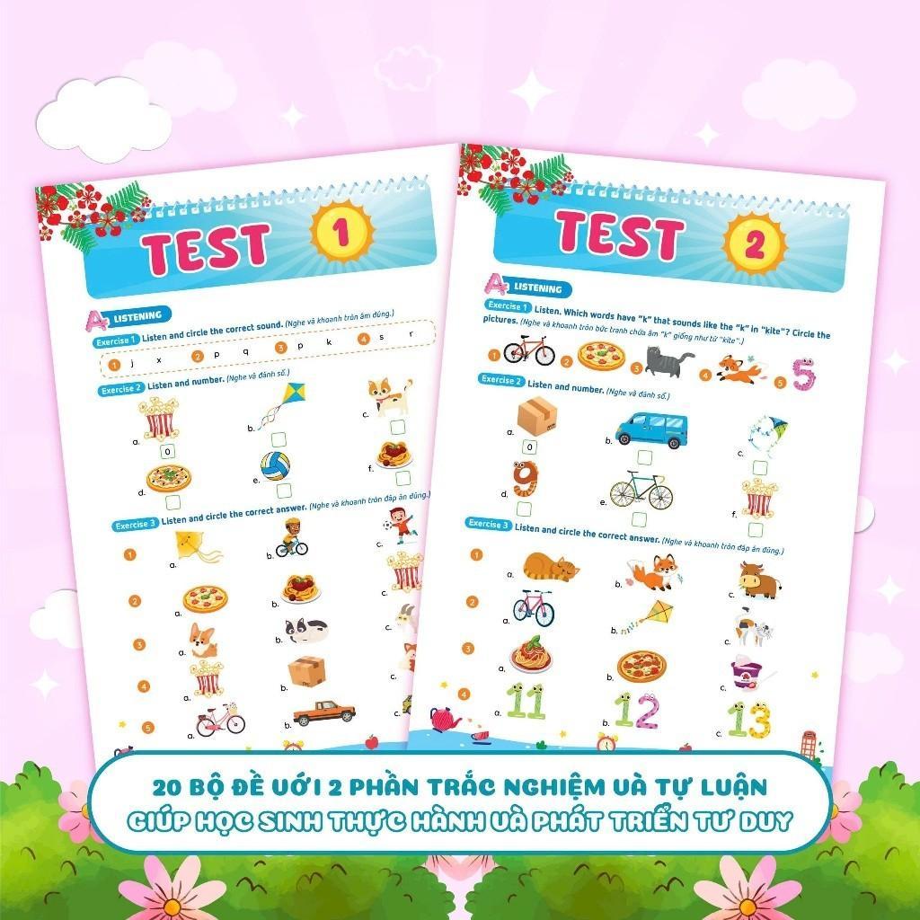 Mỗi cuốn sách bao gồm 20 bộ đề. Điều này giúp các em thực hành và nắm vững kiến thức thông qua các dạng bài tập khác nhau. Sự đa dạng này cũng giúp rèn luyện khả năng tư duy, suy luận và kích thích trí tưởng tượng của các em nhỏ.